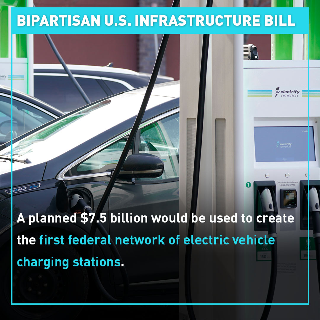 $7.5 billion would be allocated to create the first federal network of electric vehicle charging stations.