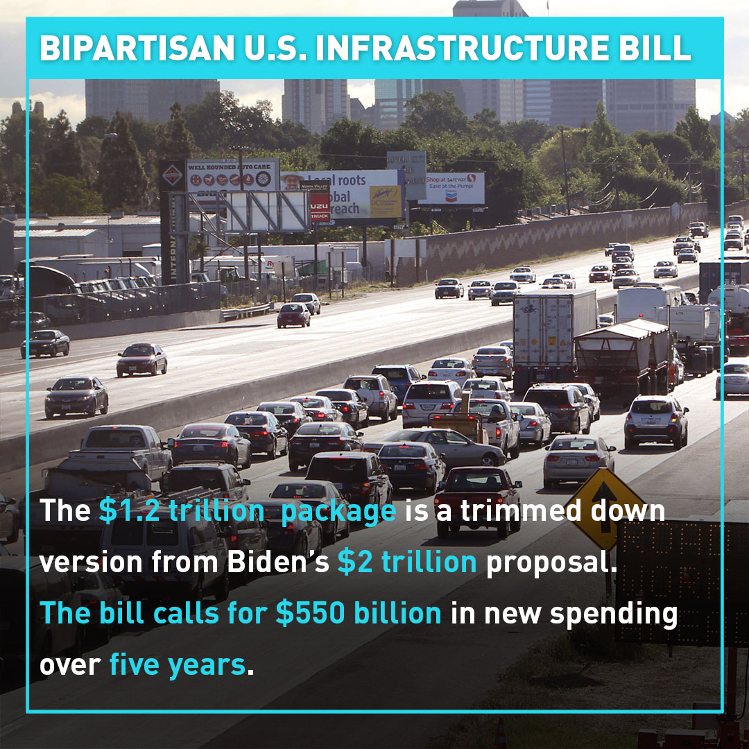 According to the Associated Press, the bipartisan bill calls for $550 billion in new spending over five years, higher than projected federal levels.