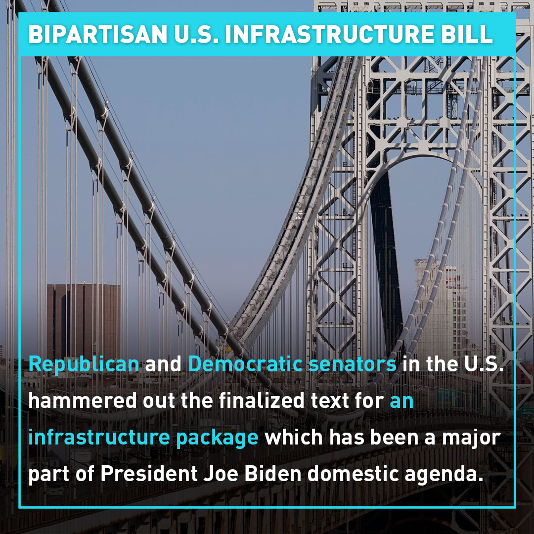 U.S. Democratic and Republican senators have hammered out the final details of a bipartisan infrastructure plan... a priority of President Joe Biden's domestic agenda.