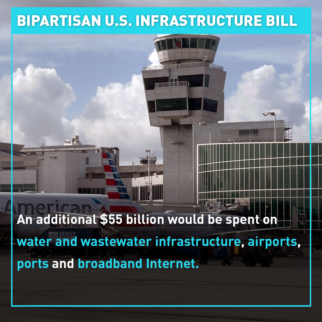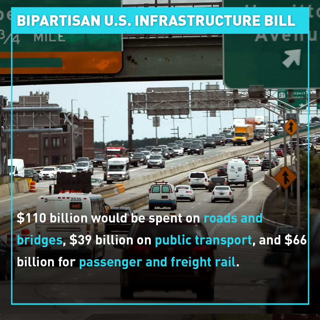 Specifically, the new investments would provide $110 billion to repair roads and bridges, $39 billion for public transit and $66 billion for passenger and freight rail. Another $55 billion would be spent on water and wastewater infrastructure, along with funding for airports, ports and broadband Internet.