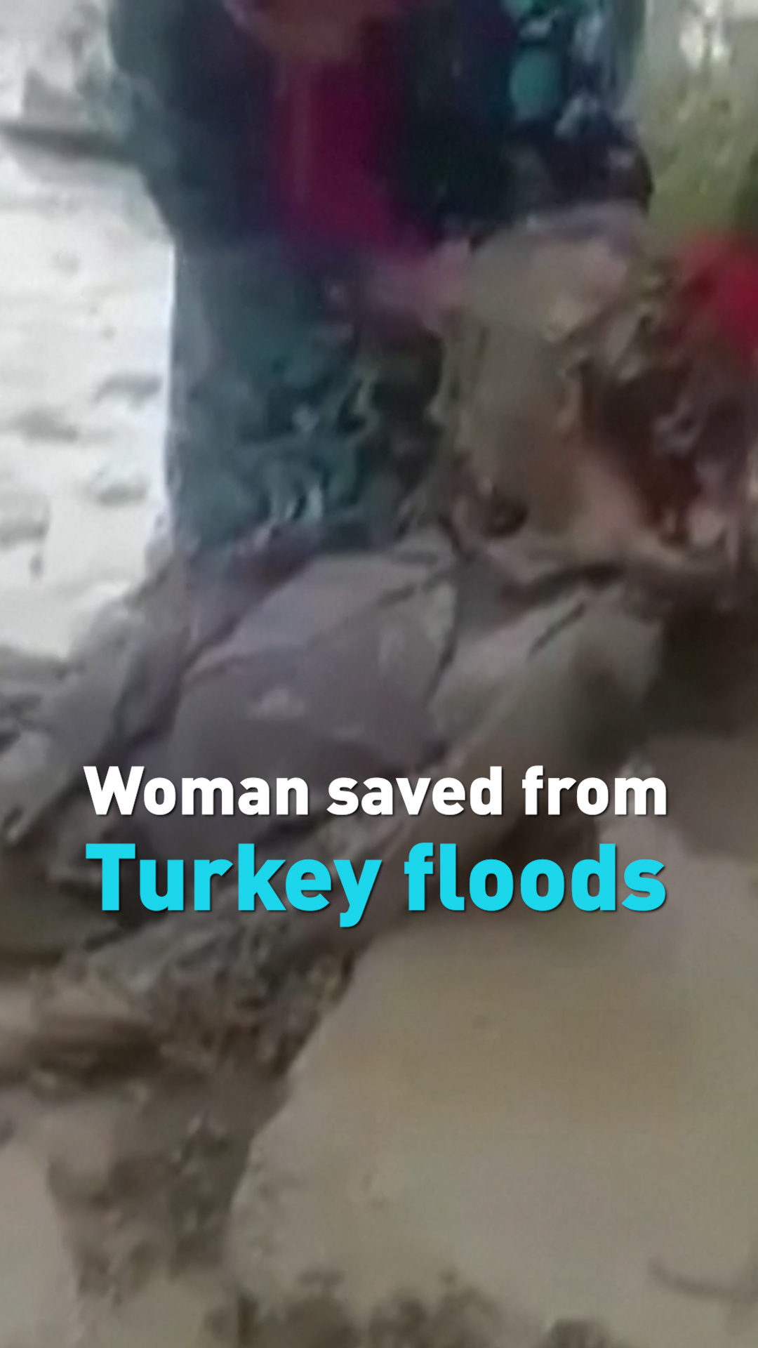 Heavy rains triggered massive floods in the eastern city of Baskale, Turkey where one woman was reportedly saved from the torrent of mud and water. Heavy rains washed away property and homes, while other parts of Turkey face deadly wildfires.