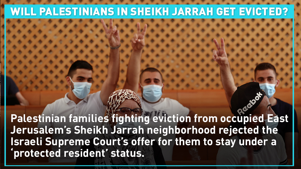 Palestinian families fighting eviction from occupied East Jerusalem's Sheikh Jarrah neighborhood have rejected the Israeli Supreme Court's offer for them to stay under a 'protected resident' status.
