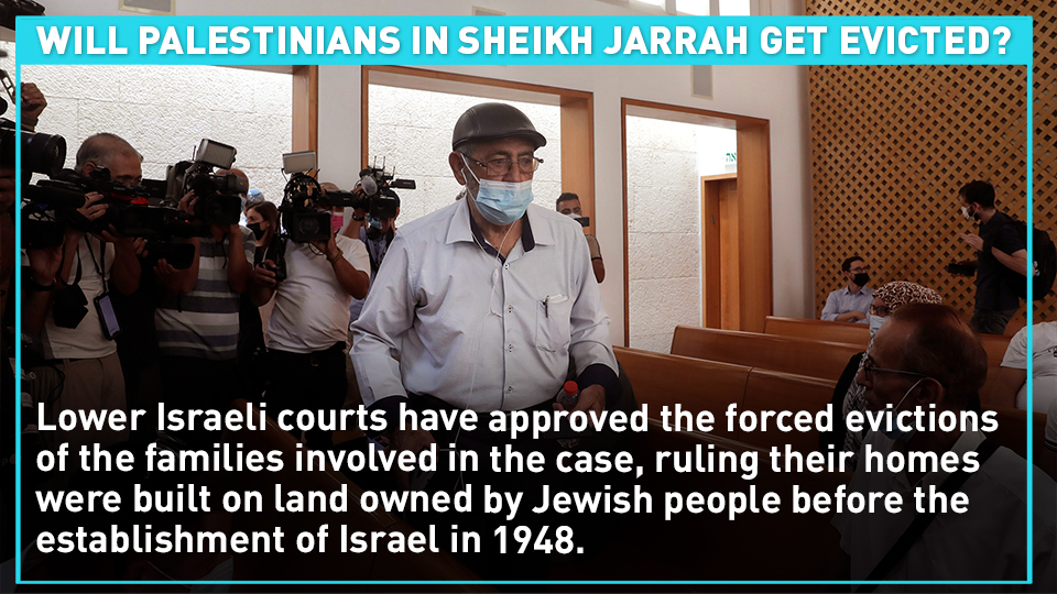 Lower Israeli courts have approved the forced evictions of the families involved in the case, ruling their homes were built on land owned by Jewish people before the establishment of Israel in 1948.