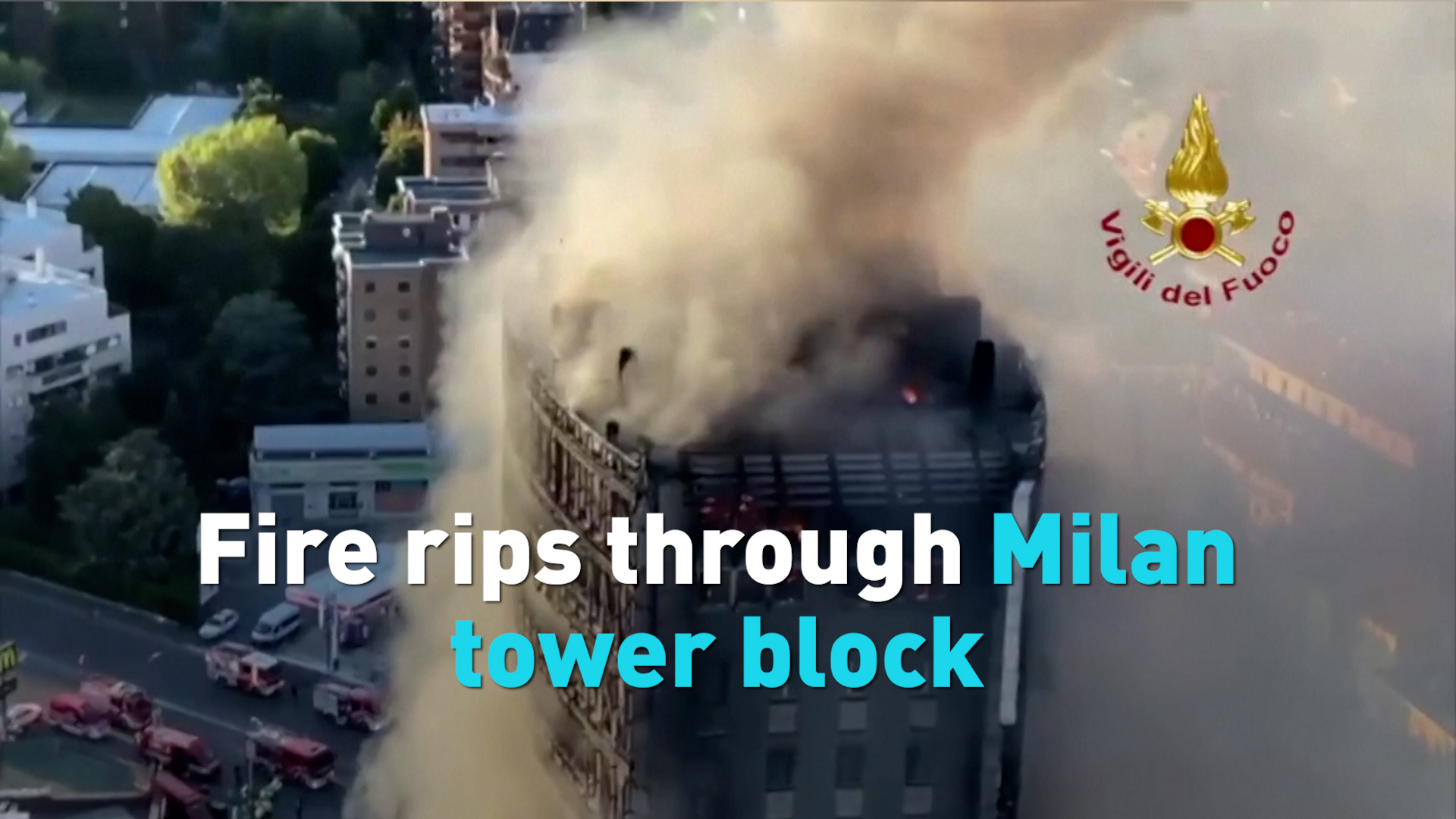 Firefighters in Milan, Italy struggled to bring a raging fire at a high-rise building under control on Monday.