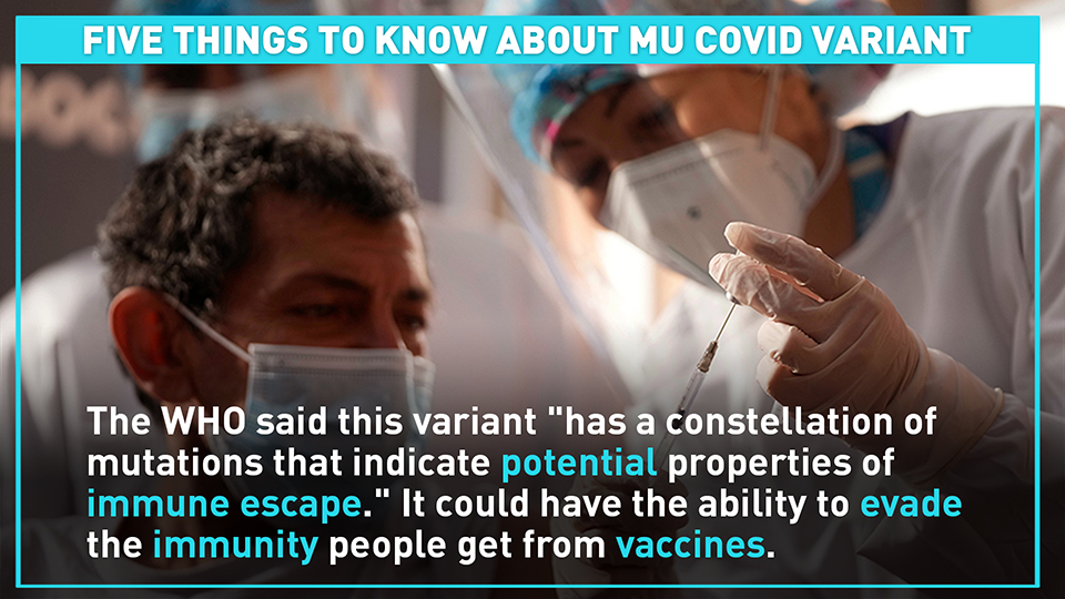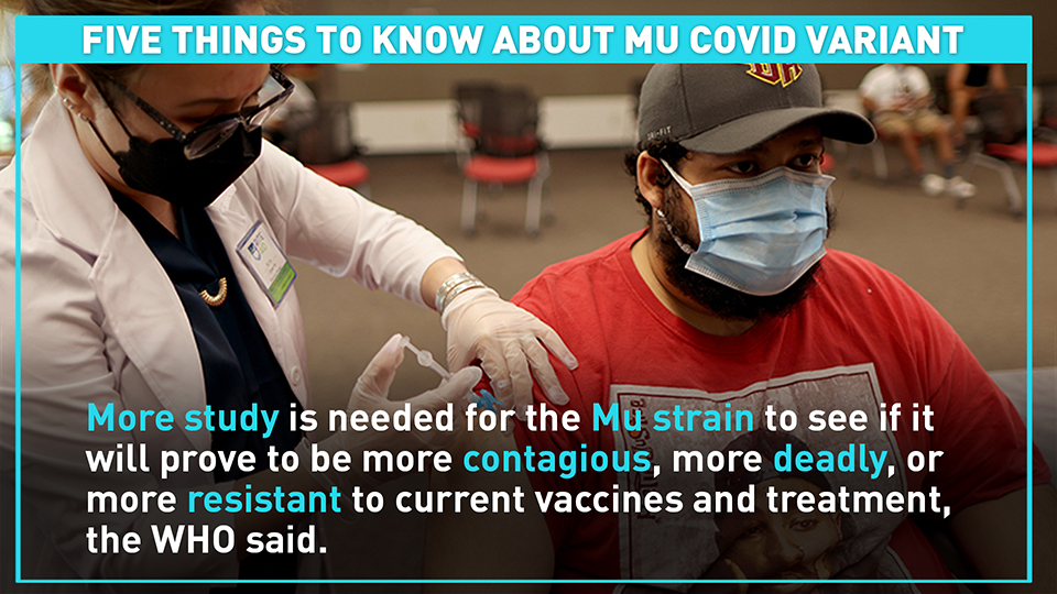 More study is needed for the Mu strain to see if it will prove to be more contagious, more deadly, or more resistant to current vaccines and treatment, the WHO said.