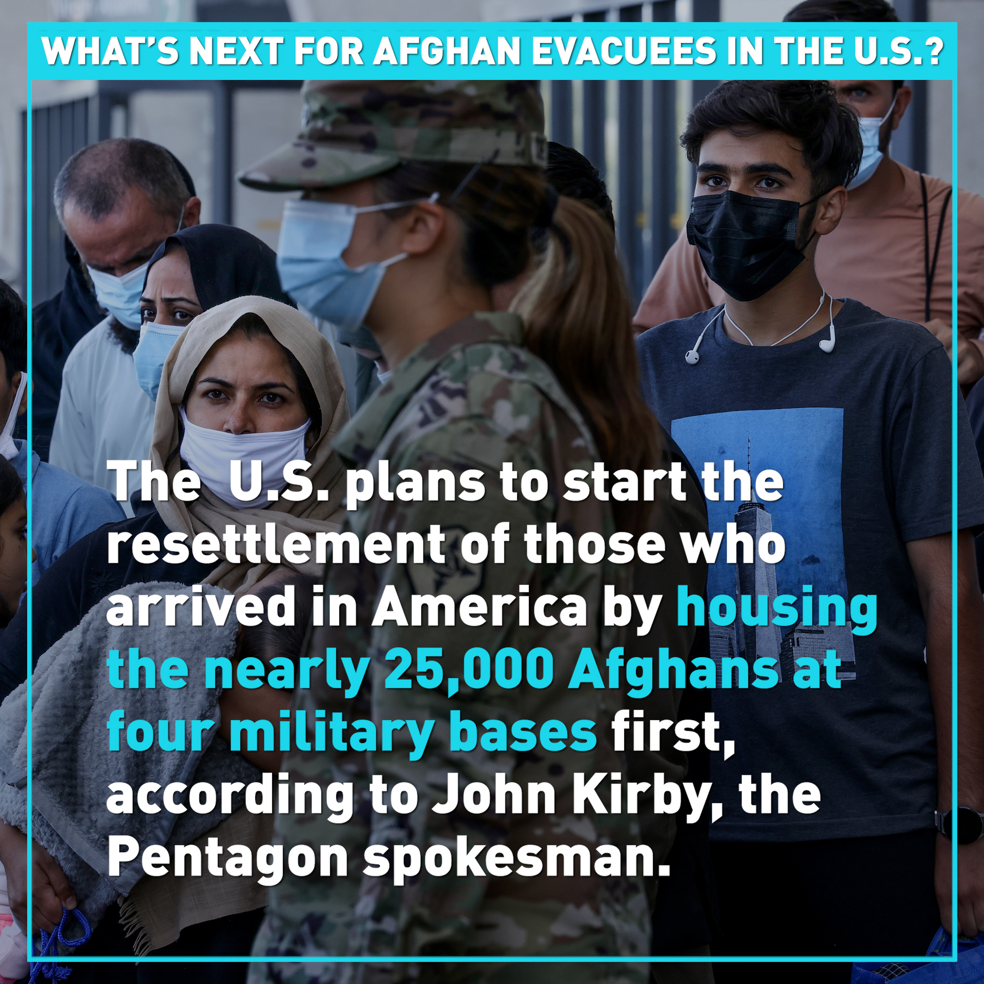 The U.S. plans to start the resettlement of those who arrived in America by first housing the Afghan evacuees at four military bases, according to John Kirby, the Pentagon spokesman.