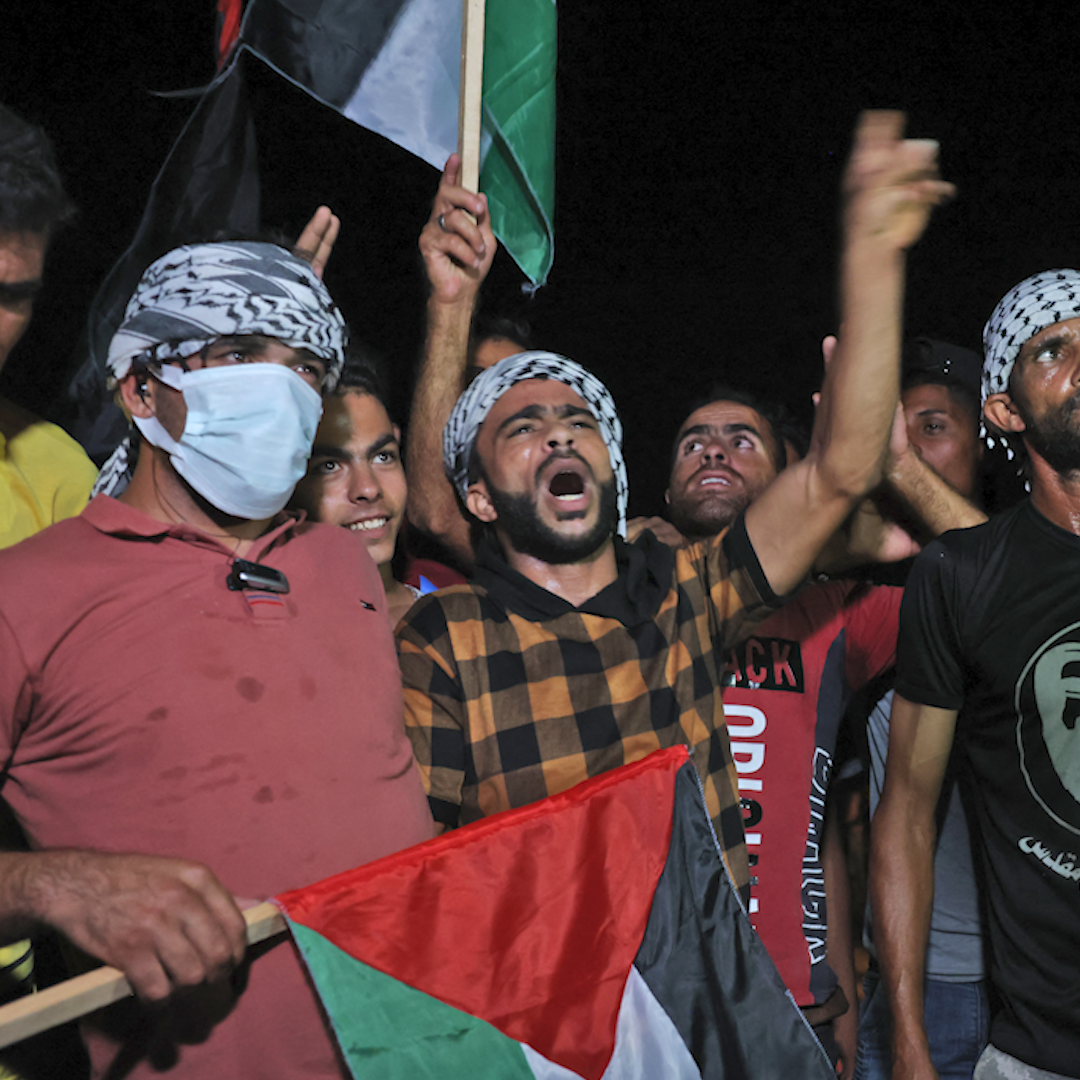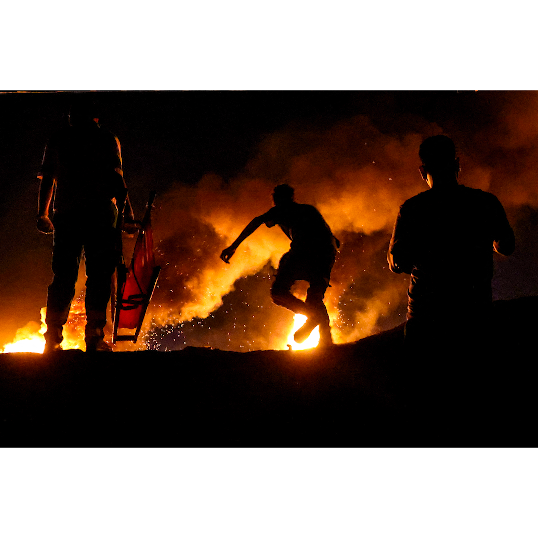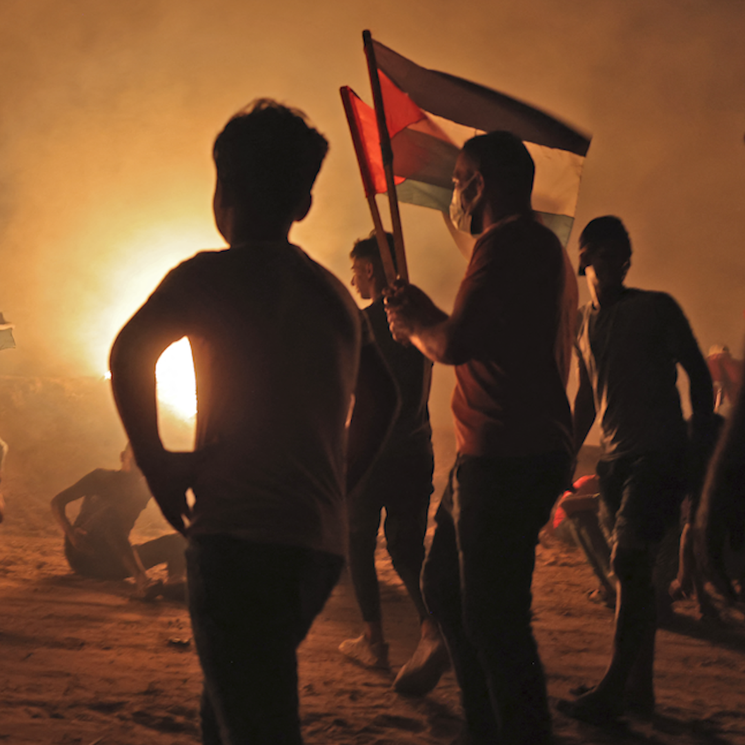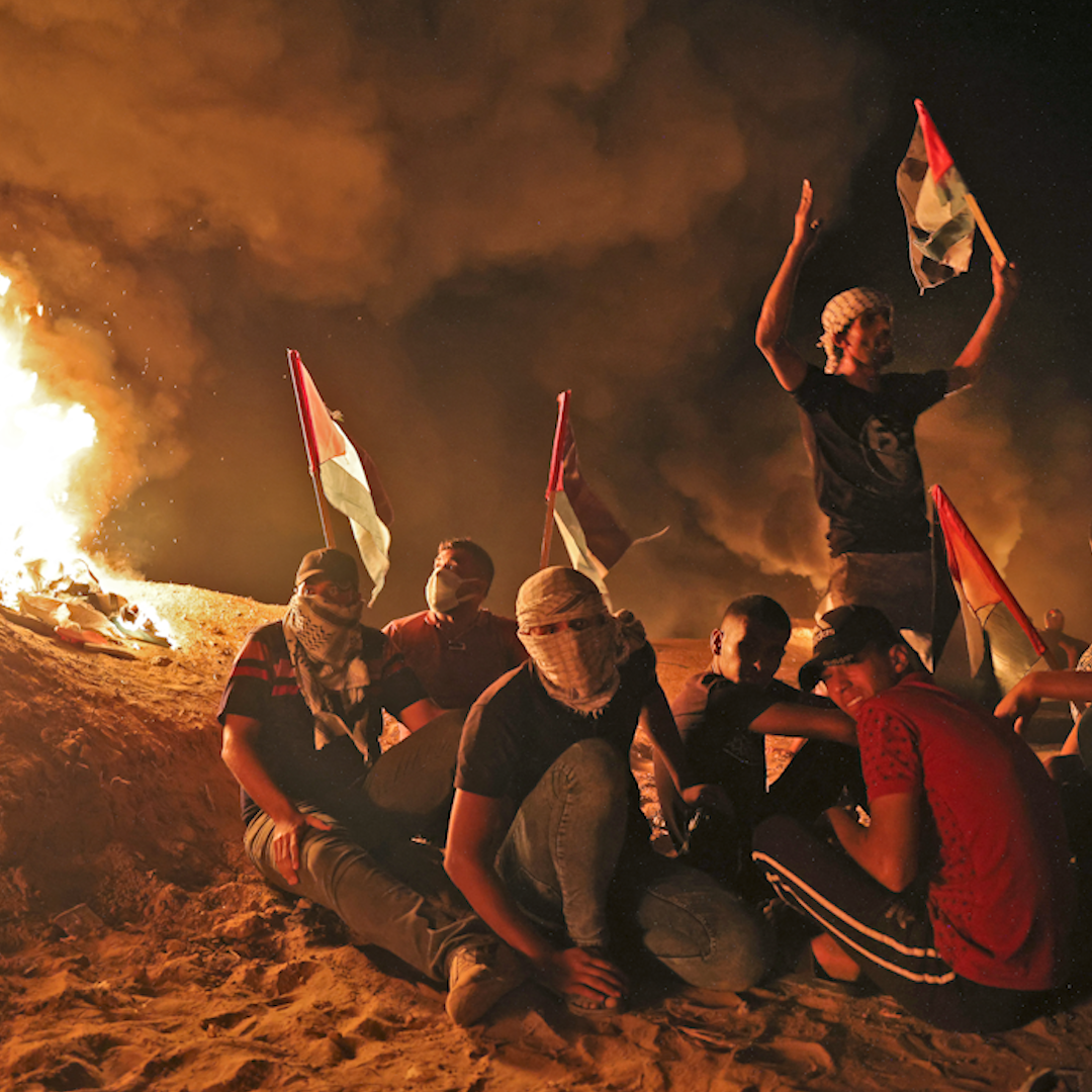 A group of Palestinians protested outside the Israel/Gaza border fence Thursday night.