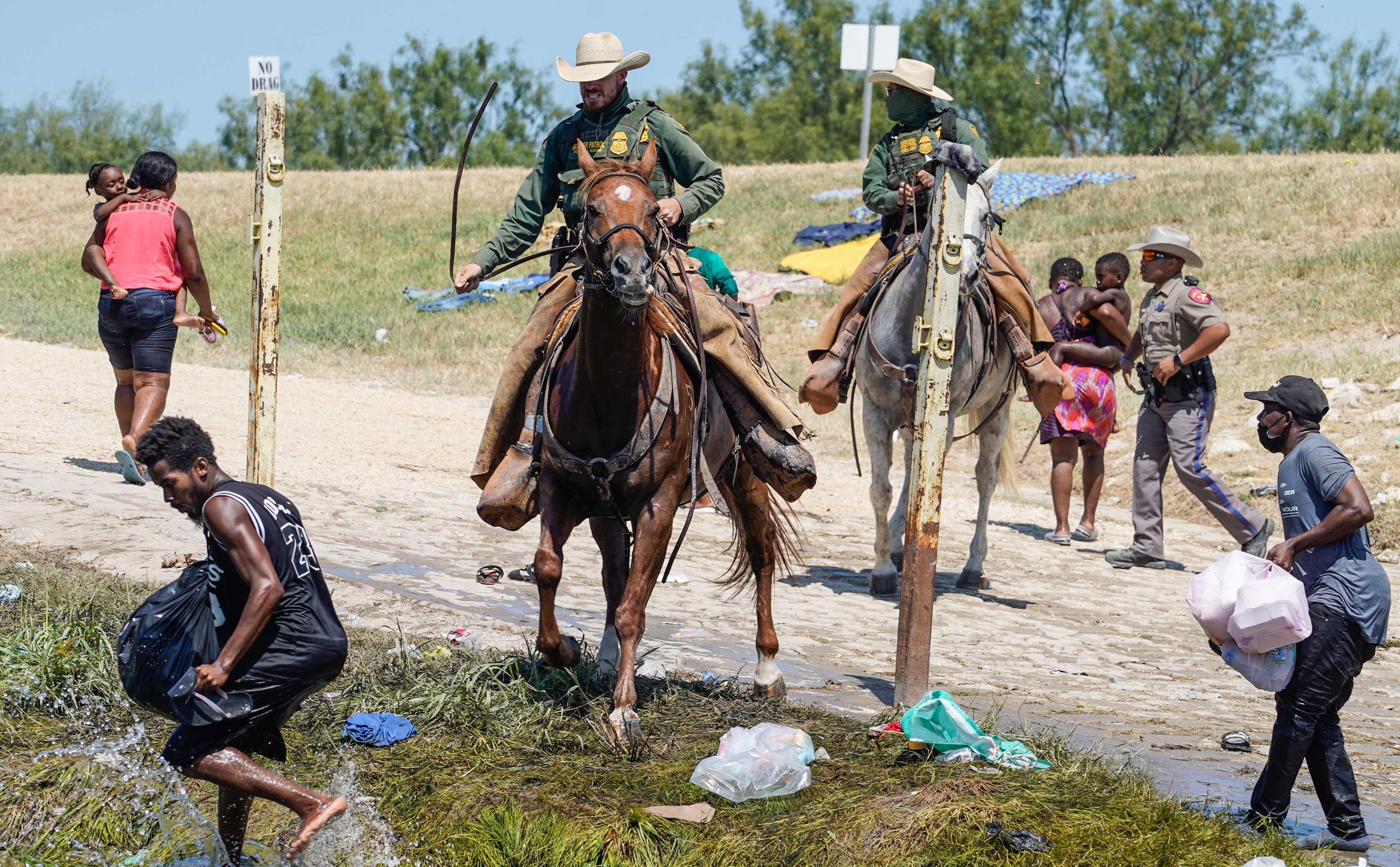 Agents on horseback were seen whipping their horse reigns at migrants to prevent people from further crossing into the U.S.