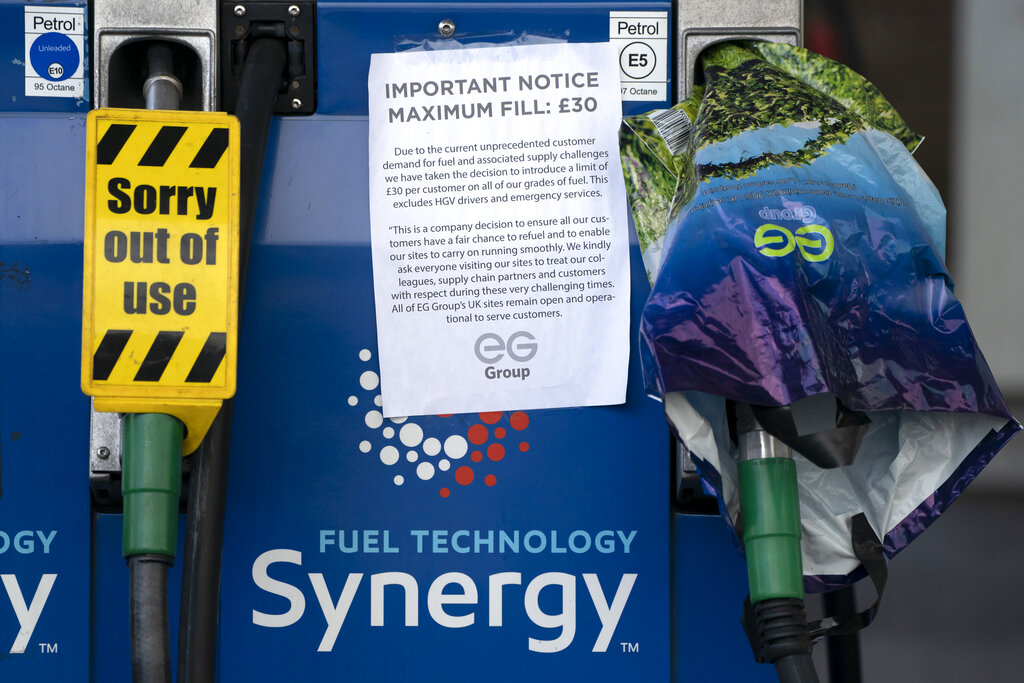 Prime Minister Boris Johnson told the public Tuesday that the fuel-supply crisis was “stabilizing.” The UK government is authorizing more than 10,000 temporary visas to attract foreign drivers, and has put more than 150 military tanker drivers on standby for fuel deliveries if necessary.