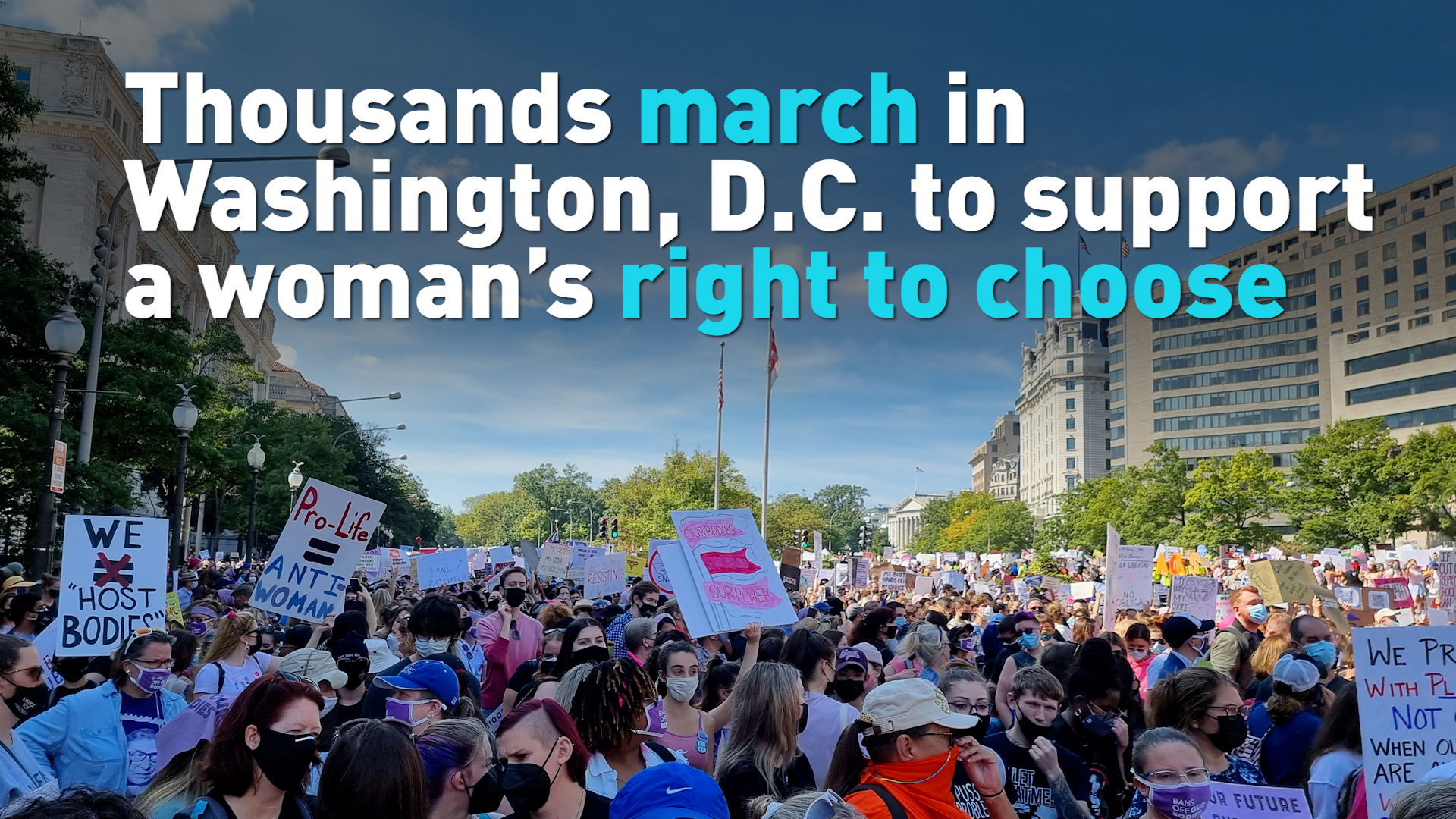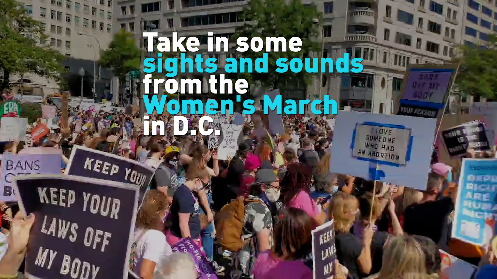 See what it looks like Saturday in downtown Washington, D.C. where thousands gathered, including an all-women drumming group called Batala, in support of reproductive freedoms at the Women’s March 2021.