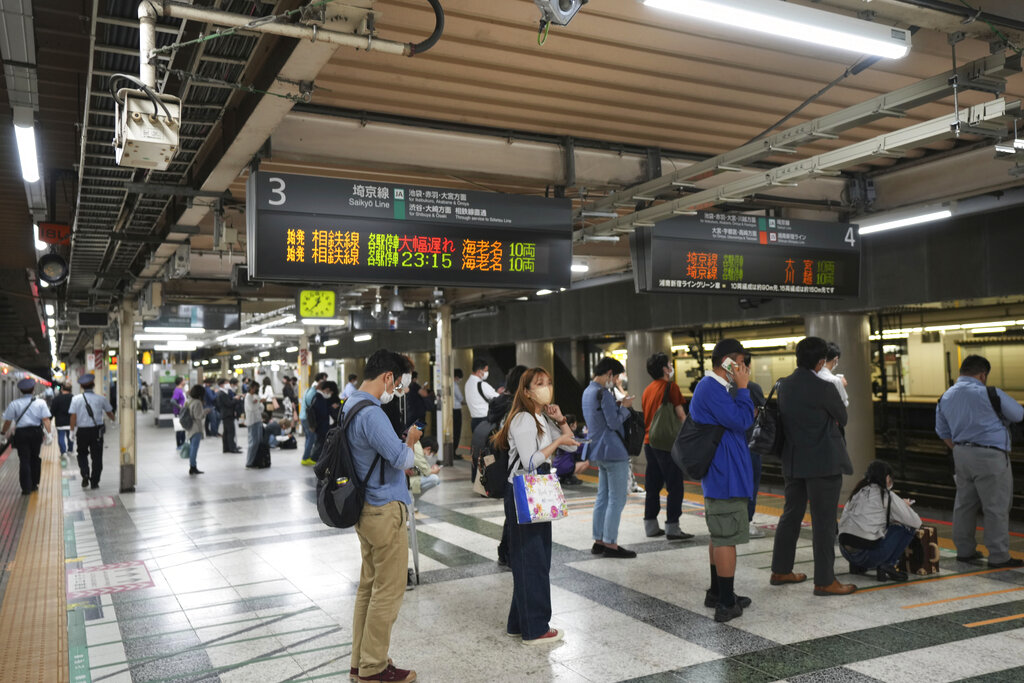 Some passengers were stranded temporarily as they waited for stopped trains to resume operations. The earthquake shook the Japanese capital and surrounding areas, knocking items off shelves.