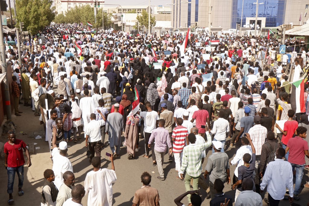 The doctors union of Sudan says security forces shot and killed two people in the city of Omdurman, where protests are taking place Saturday.