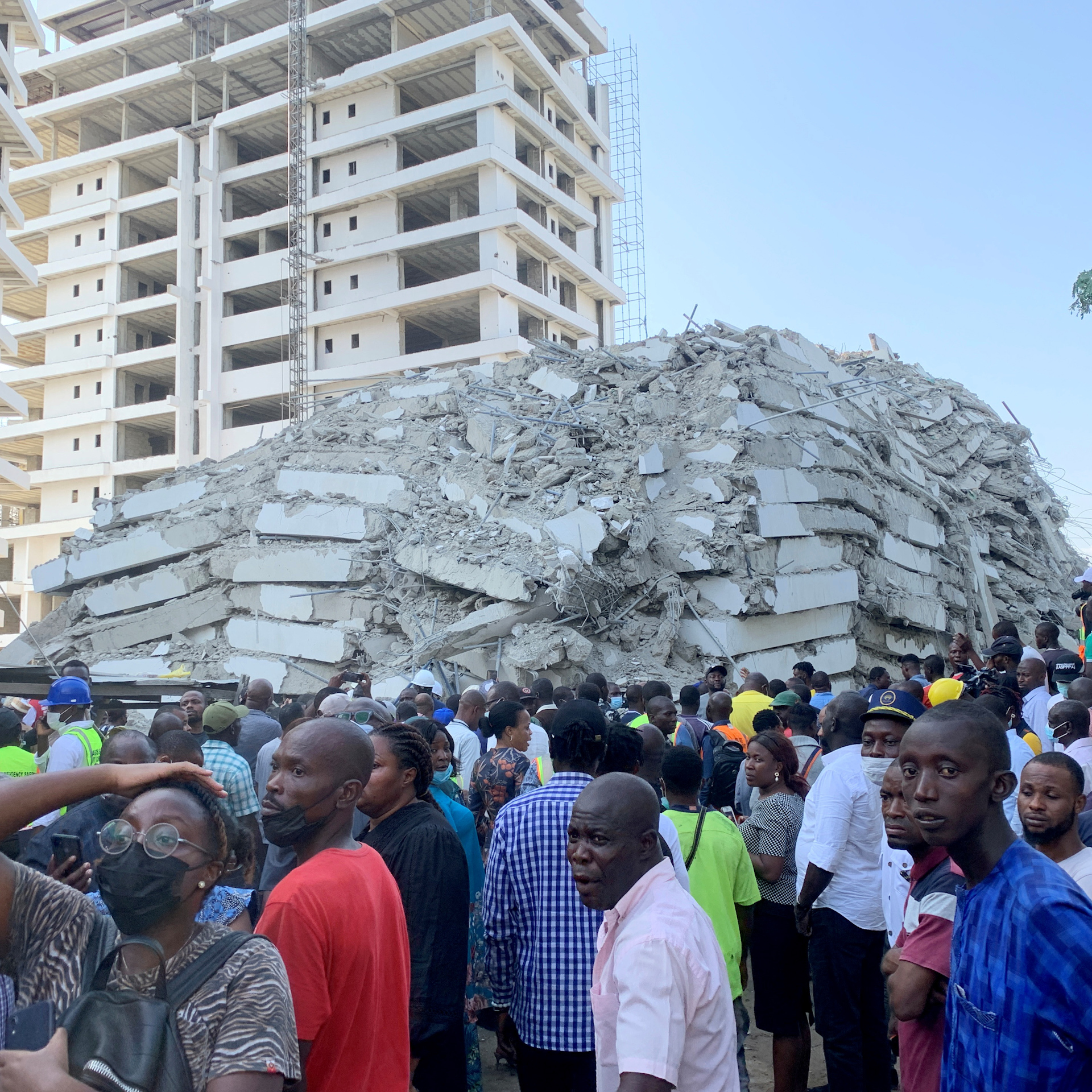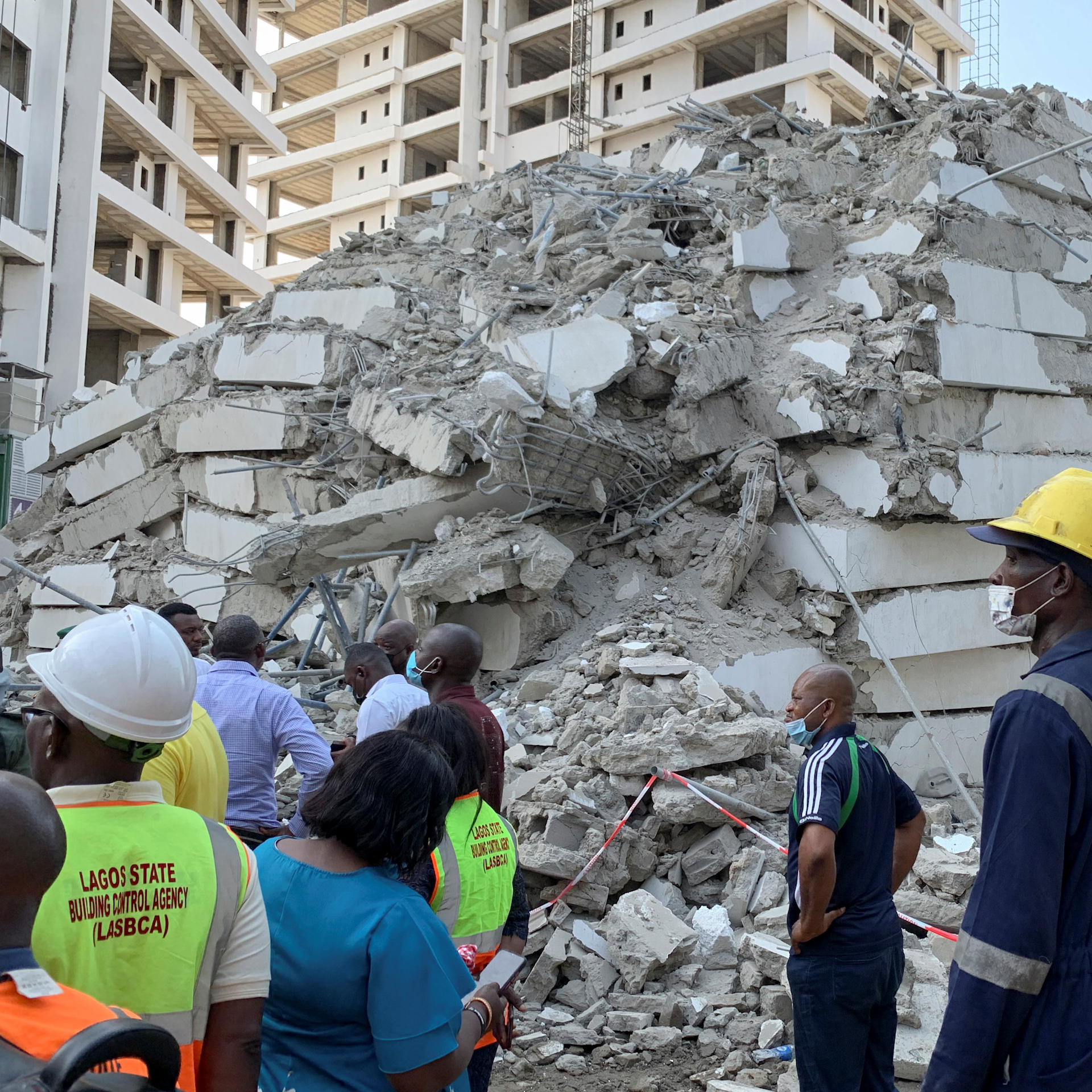 Rescuers are searching for survivors in the wreckage of a 22-story building that collapsed under construction in Nigeria's largest city, Lagos. At least five people have died and dozens more are missing. Six survivors have been pulled from the wreckage.