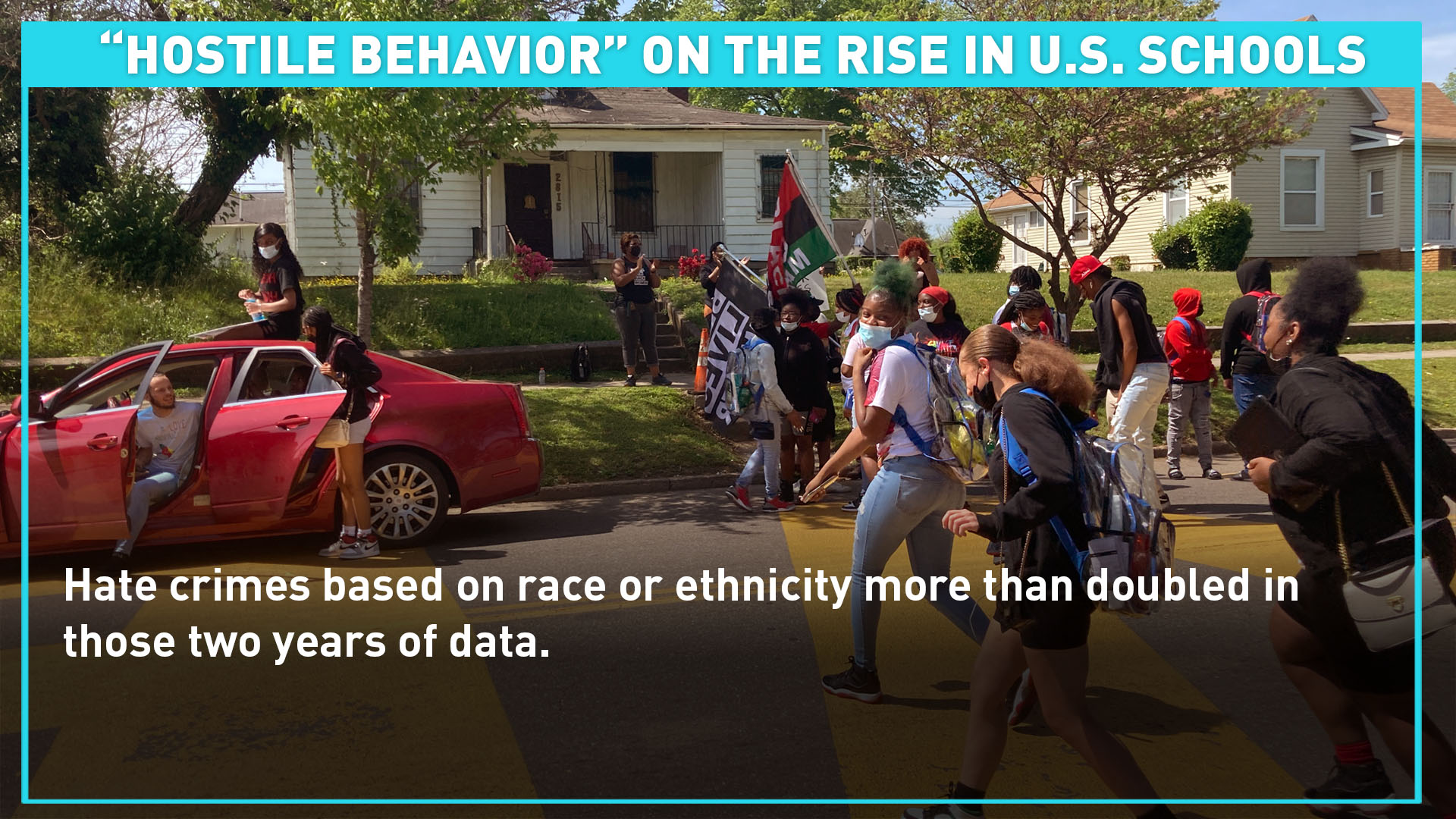 Hate crimes and physical attacks with a weapon have nearly doubled in a two-year period during 2015-2016 to 2017-2018. The number of hate crimes based on race or color and national origins or ethnicity more than doubled in those years.