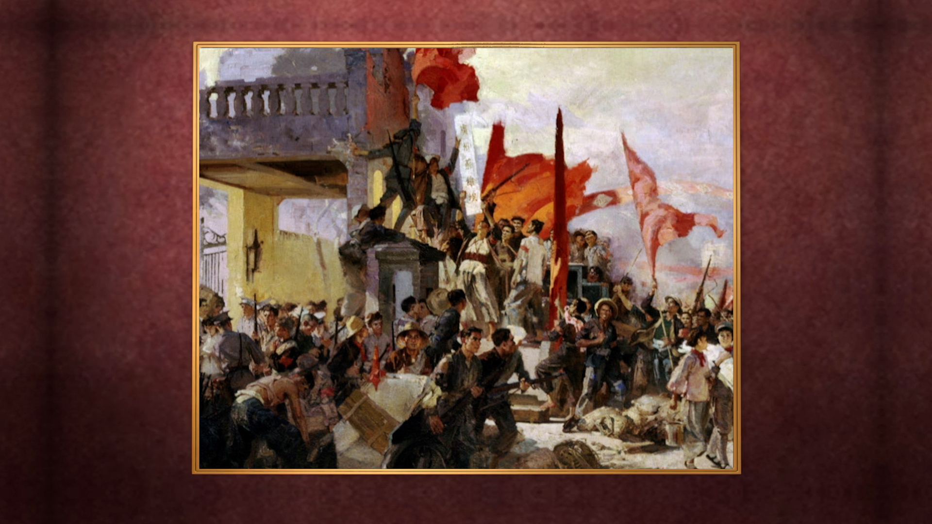 It depicts a scene from the Guangzhou Uprising which occurred in 1927.