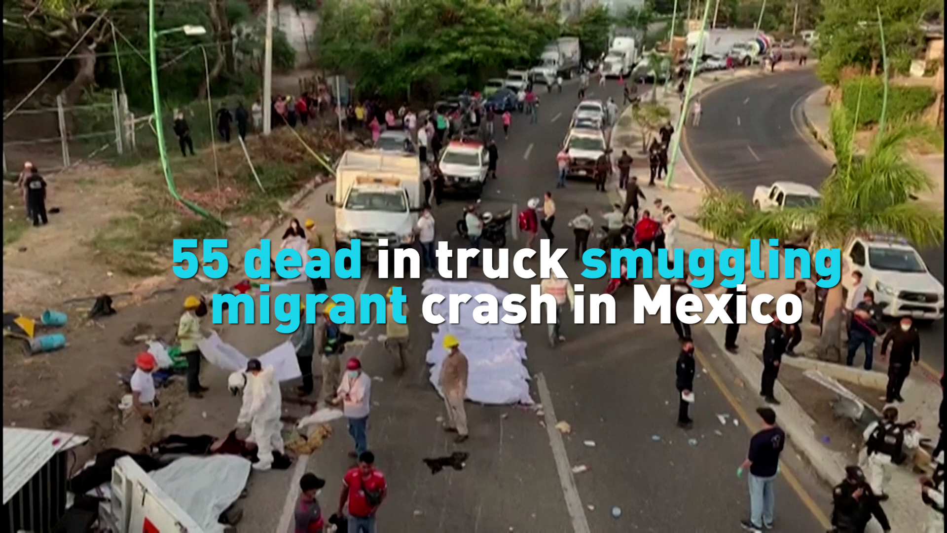 55 people are dead and more than 50 people are injured after a tractor-trailer filled with 200 migrants crashed into the base of a steel pedestrian bridge.