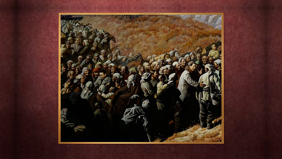 It depicts the CPC Central Committee leaving Xibaipo village in north China's Hebei province and saying goodbye to villagers before their departure in 1949.
