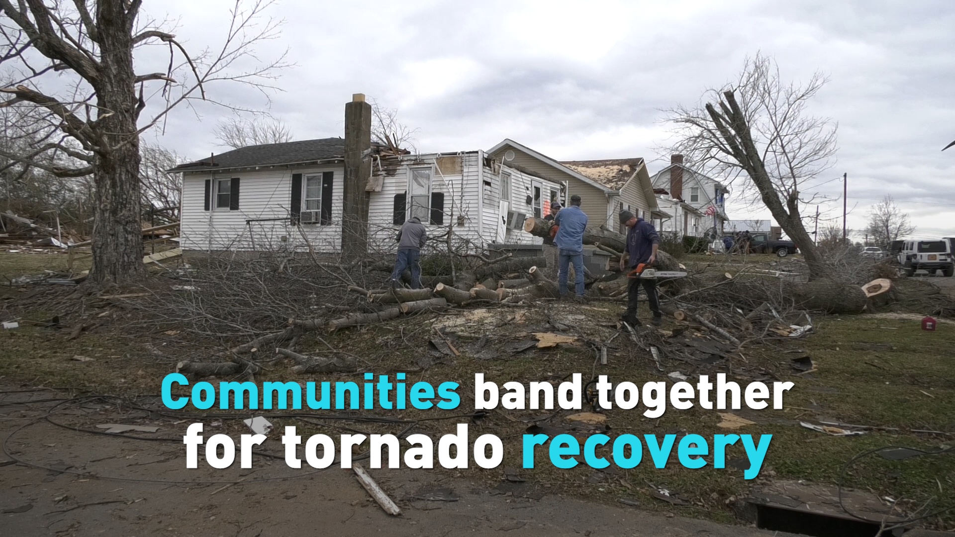 Communities in Kentucky and cleaning up and starting to rebuild after a deadly tornado swept through the region.
