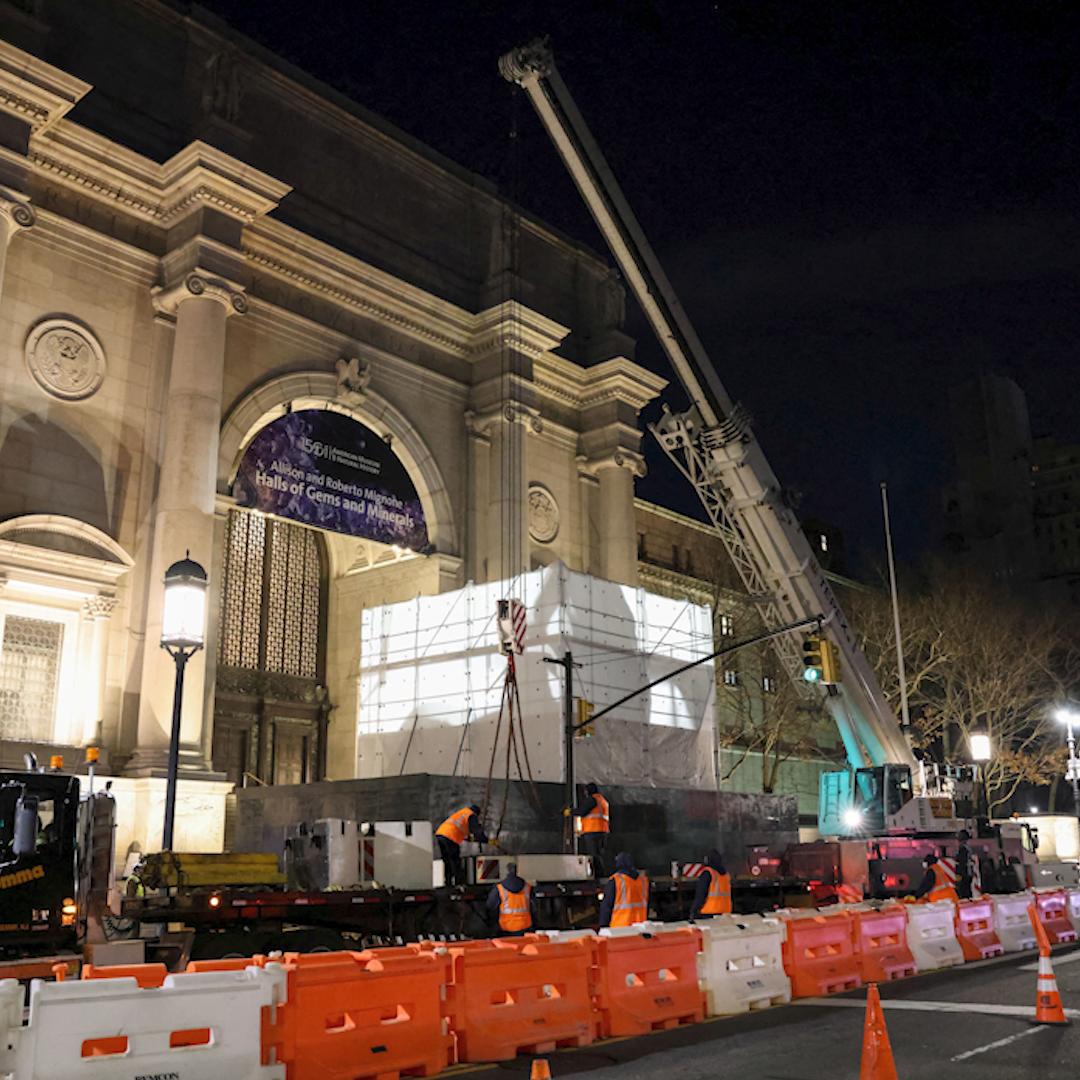 Workers are removing a statute of Theodore Roosevelt from outside the American Museum of Natural History in New York City.