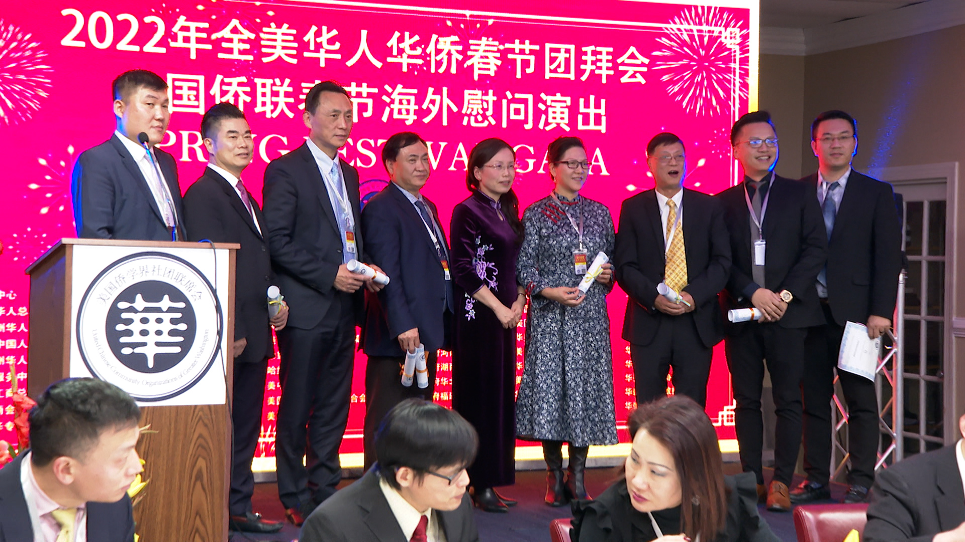 Chinese Ambassador to the U.S., Qin Gang also delivers a speech via video. He wishes everyone happy Chinese new year.