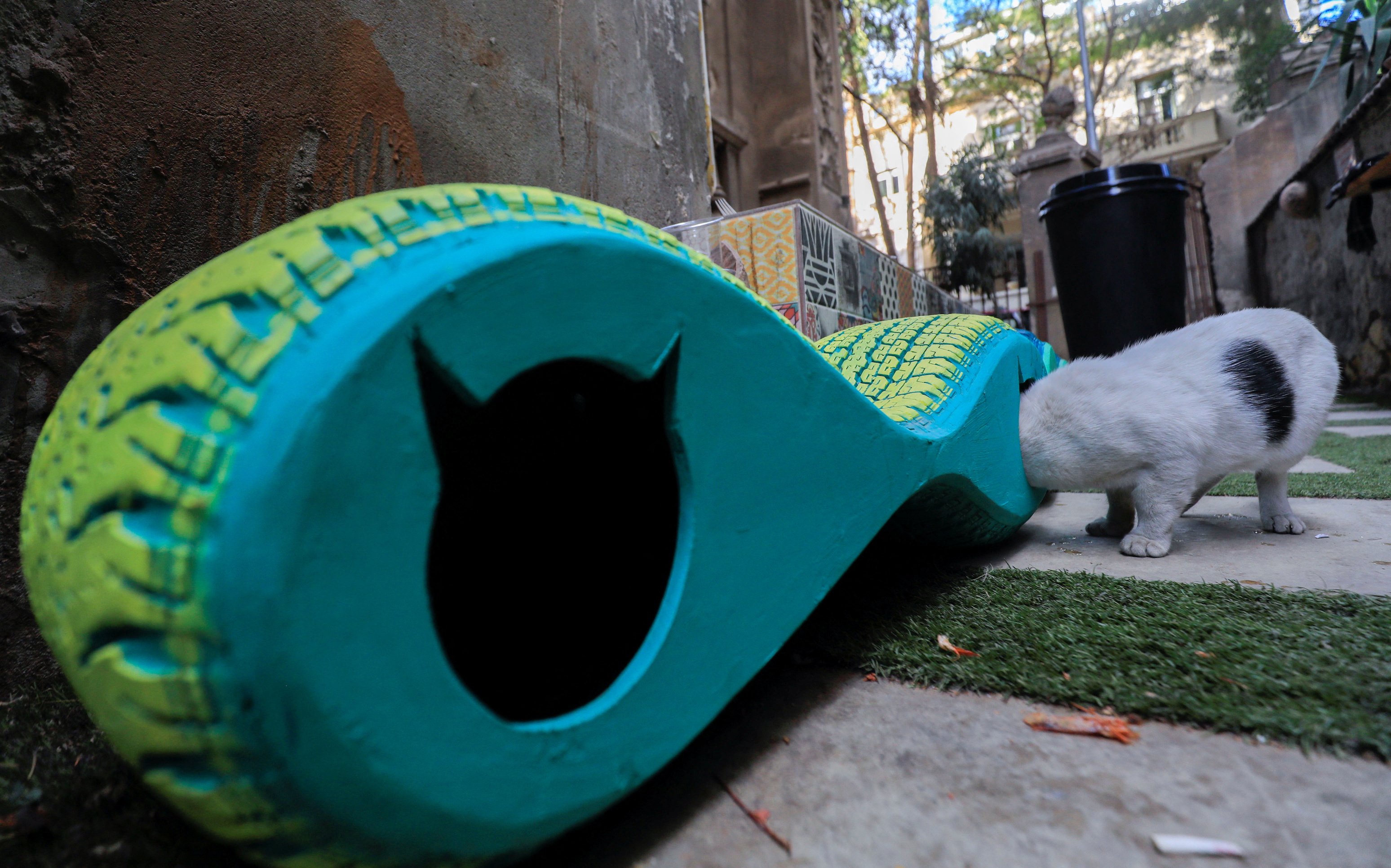 Street cats in Cairo now have a warm place to sleep thanks to an eco-friendly artist who created and distributed up-cycled shelters made from car tires.