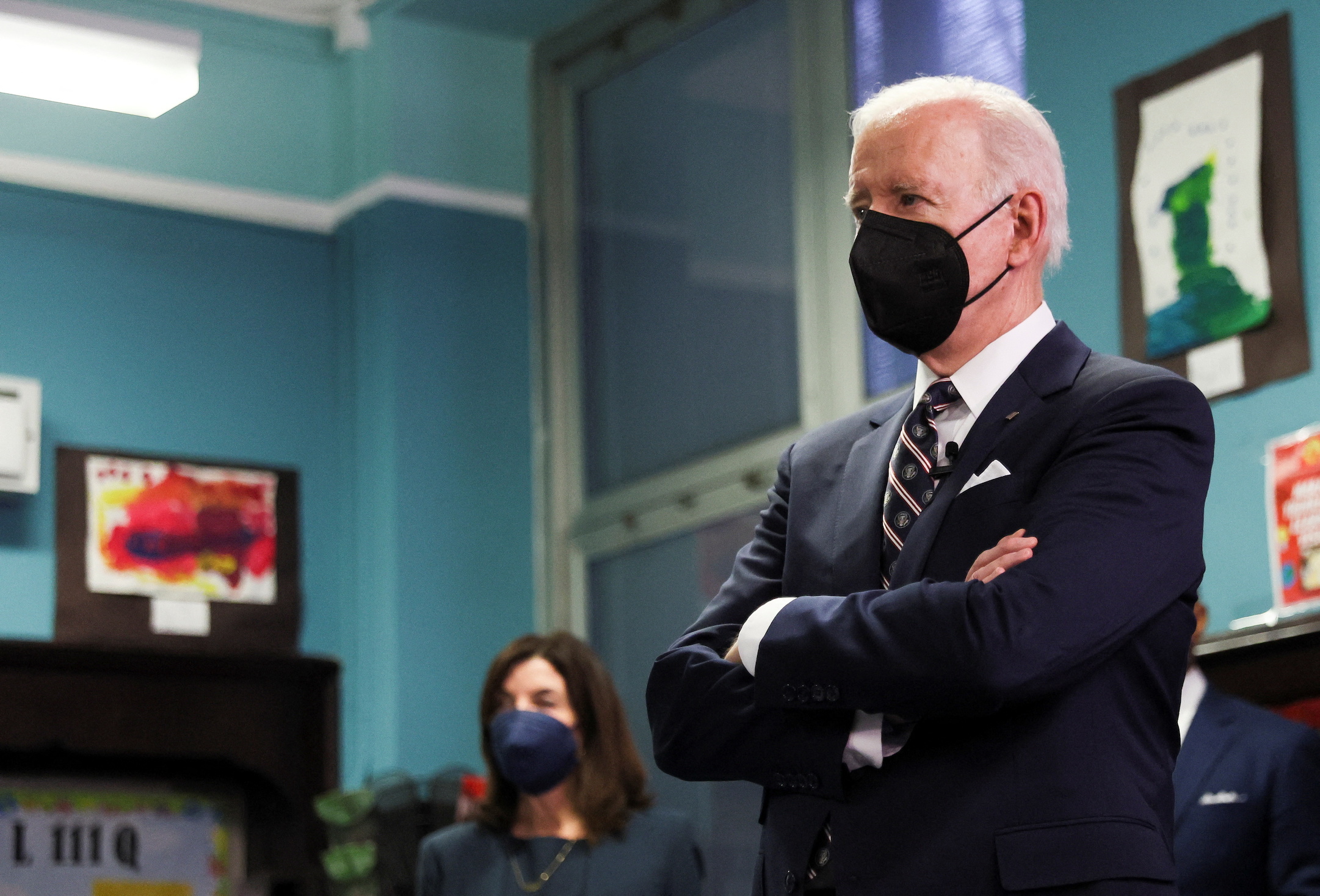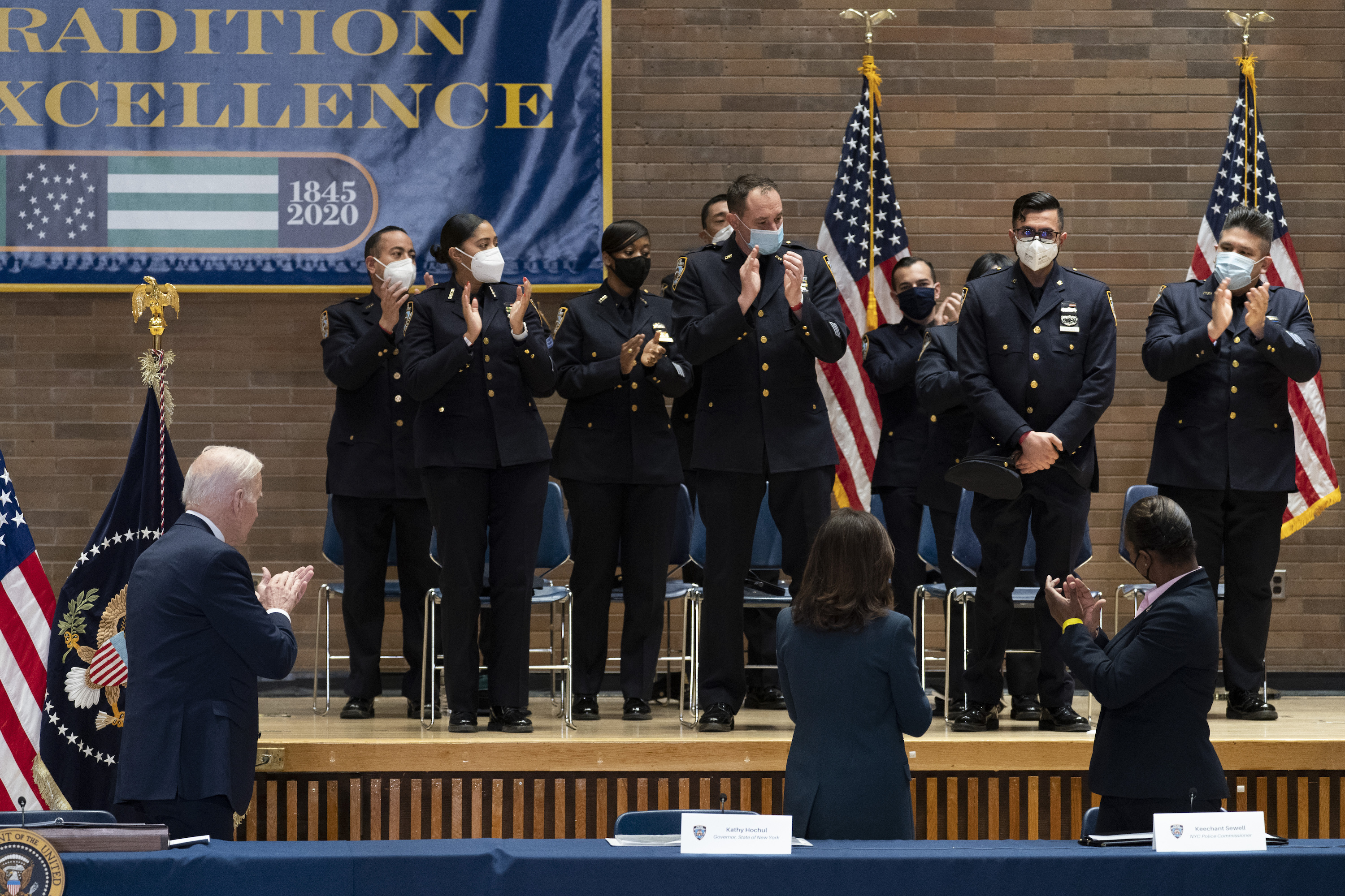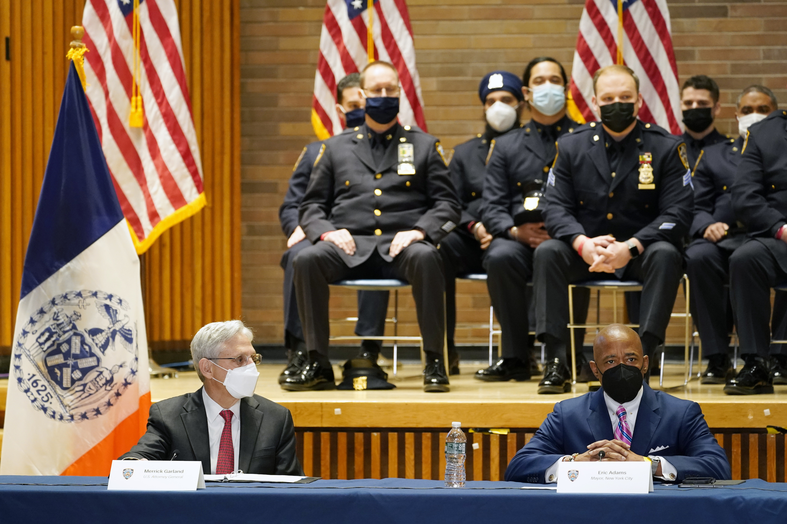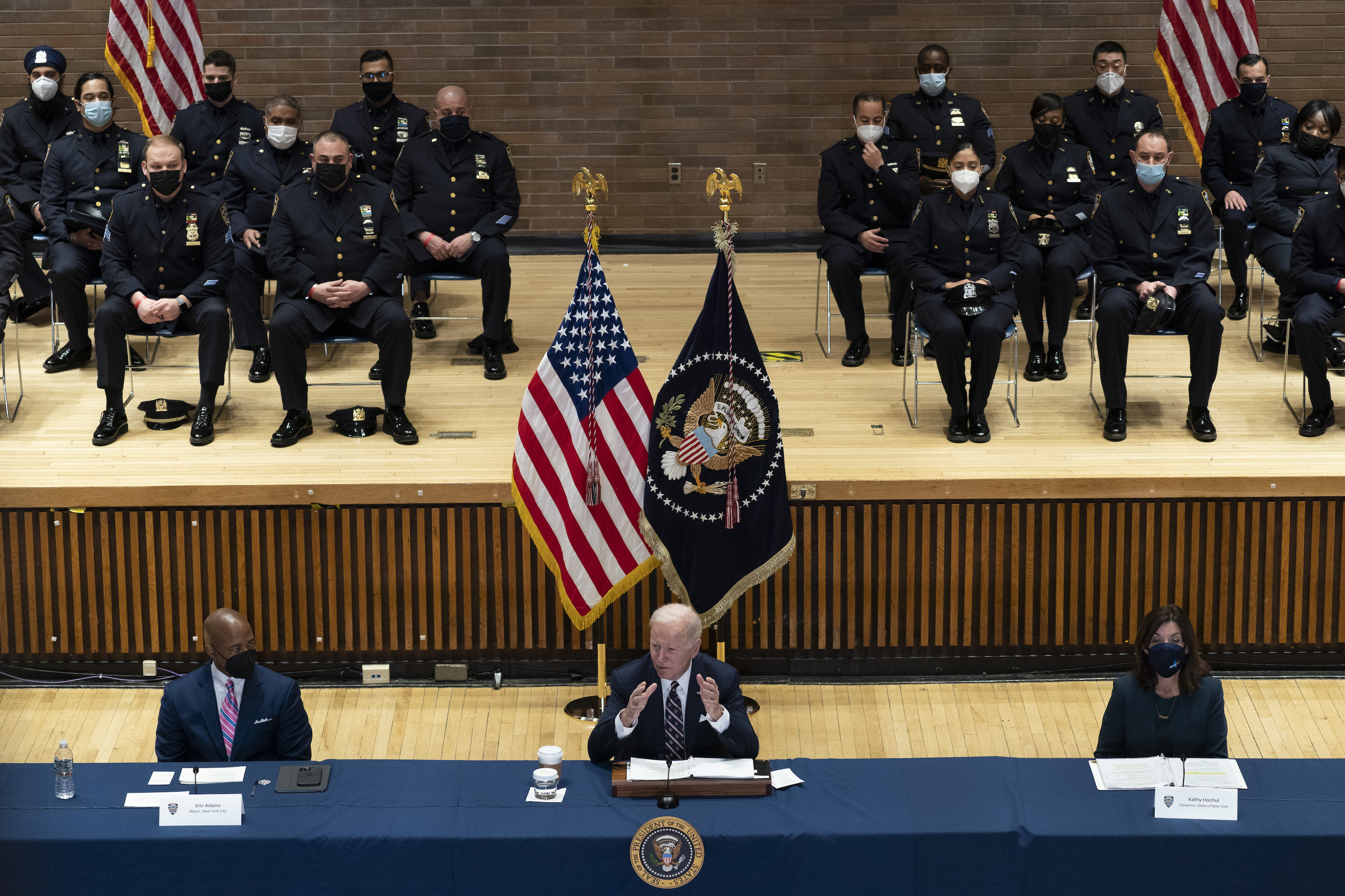 U.S. President Biden traveled to New York City with Attorney General Merrick Garland on Thursday to meet with Mayor Eric Adams and New York Governor Kathy Hochul at the NYPD headquarters to discuss gun violence and strategy.