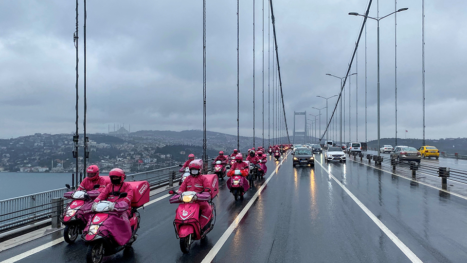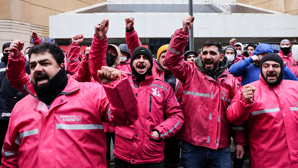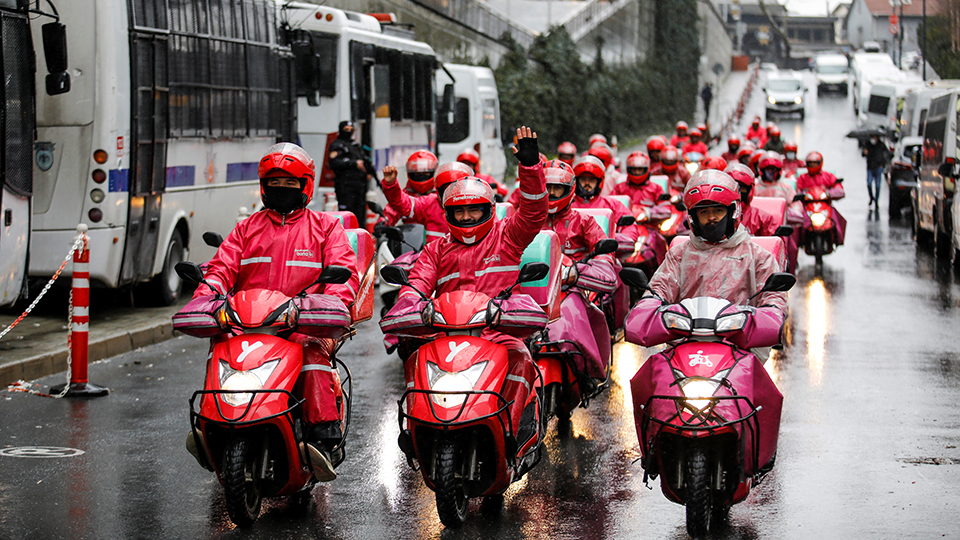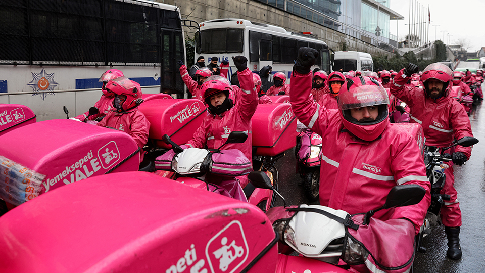 Hundreds of food delivery couriers demand for higher pay in Istanbul
