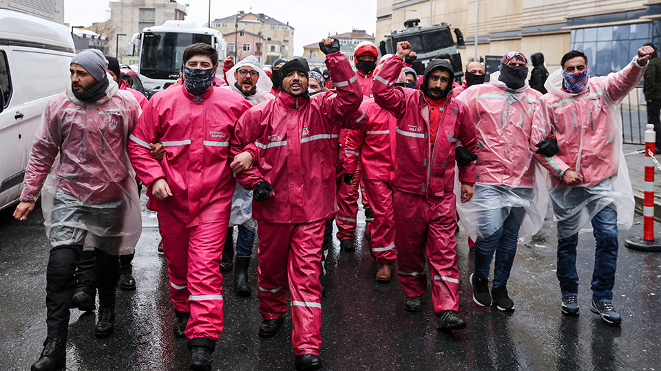Hundreds of couriers from Turkey's largest food delivery company Yemeksepeti took to the street in Istanbul on Thursday to demand for higher pay, as the country's annual inflation rate has soared to a 20-year high of 48.7 percent.
