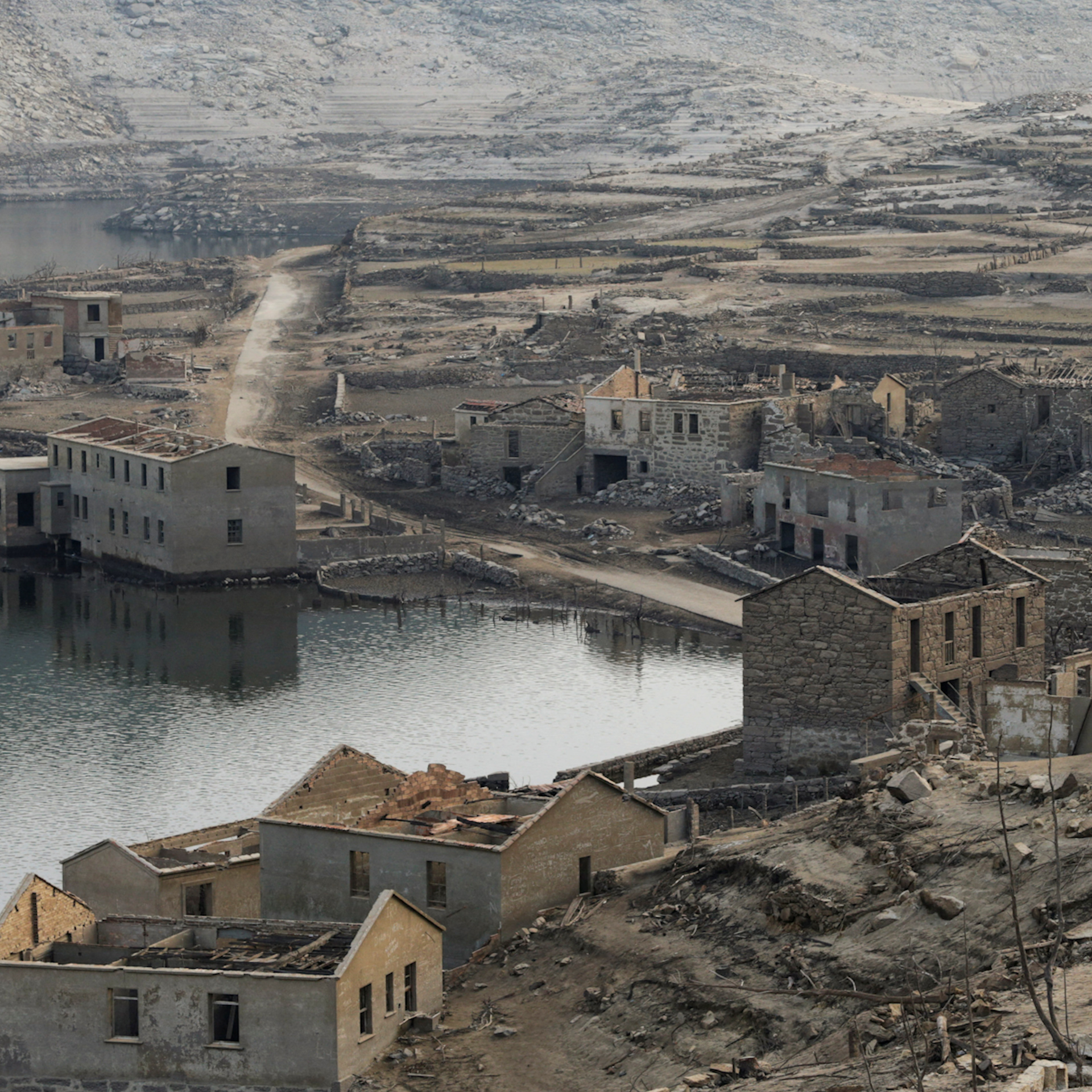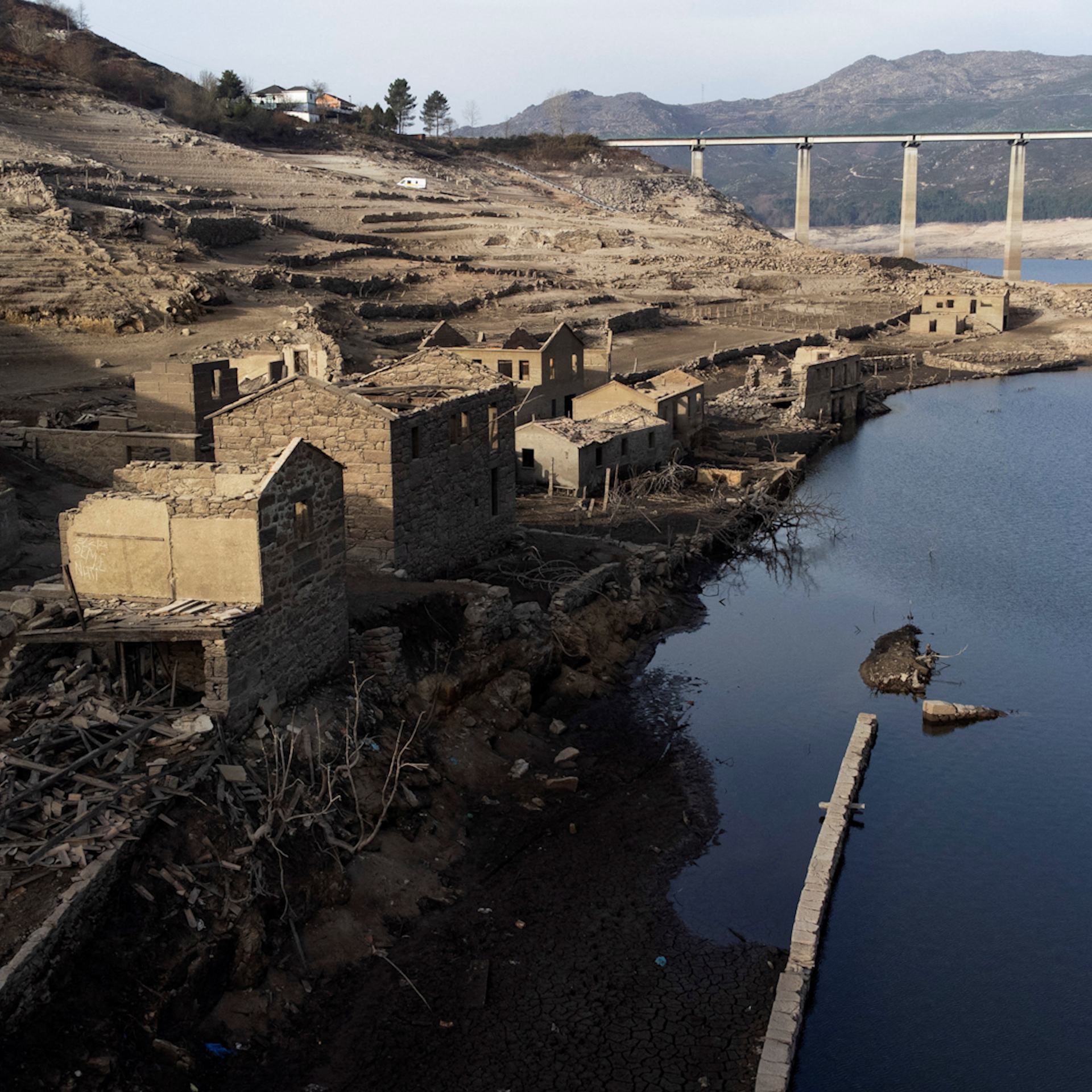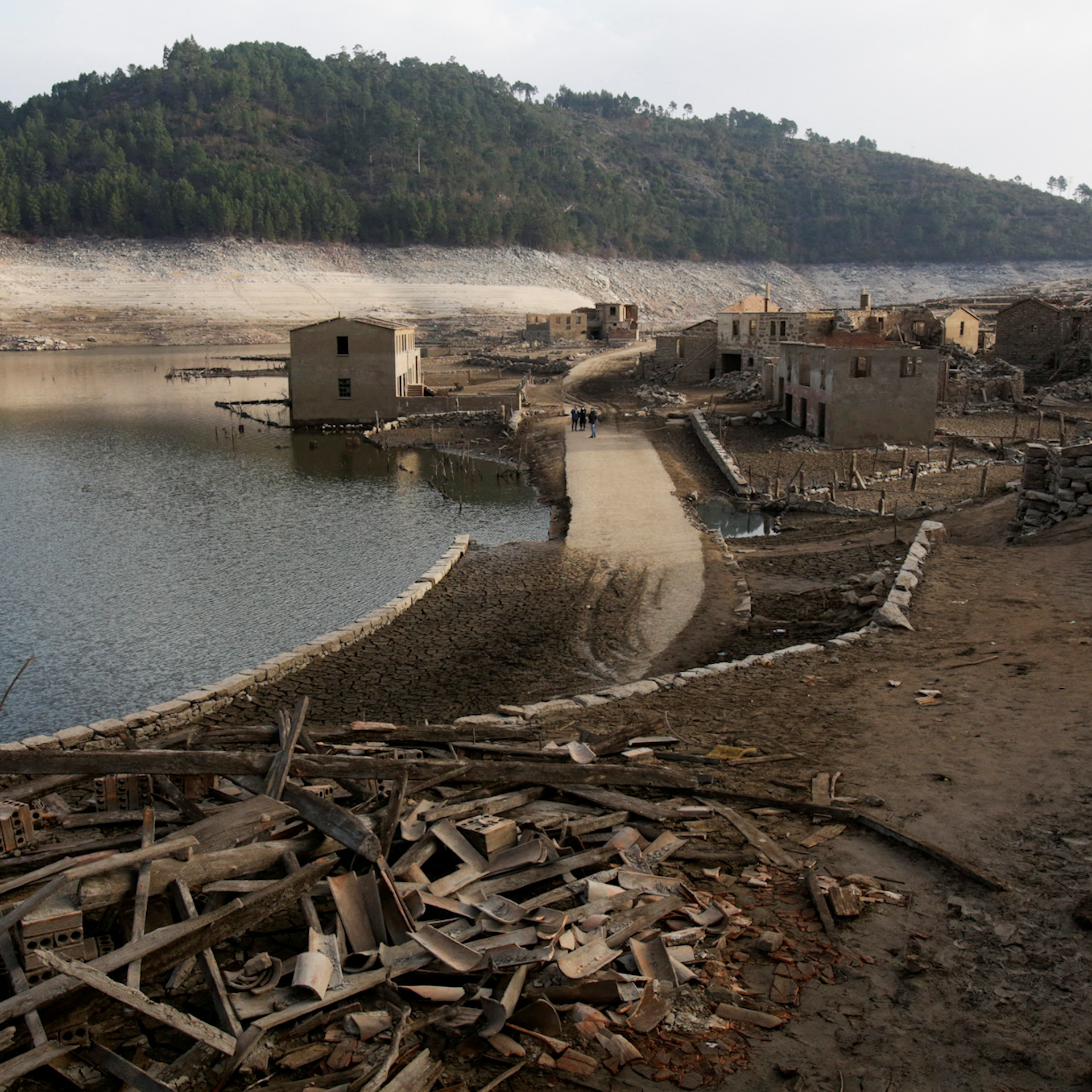 A drought has left the local reservoir at 15% of its capacity, bringing the Aceredo village back to the surface.