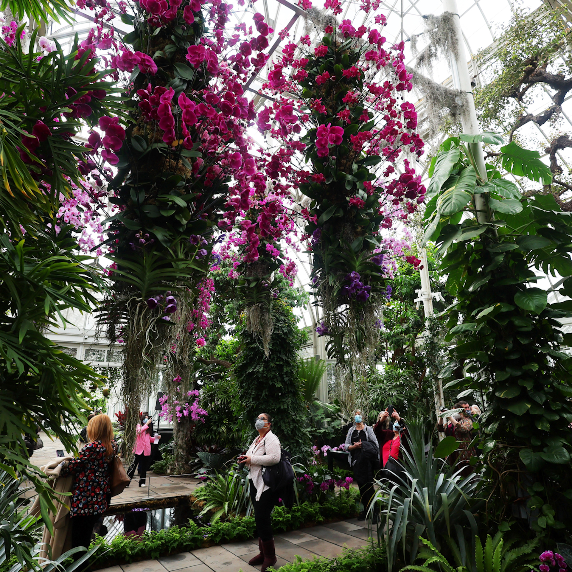 Thousands of orchids in every shape and color are featured in the show and visitors get to walk through towers and sculptures featuring the flowers.