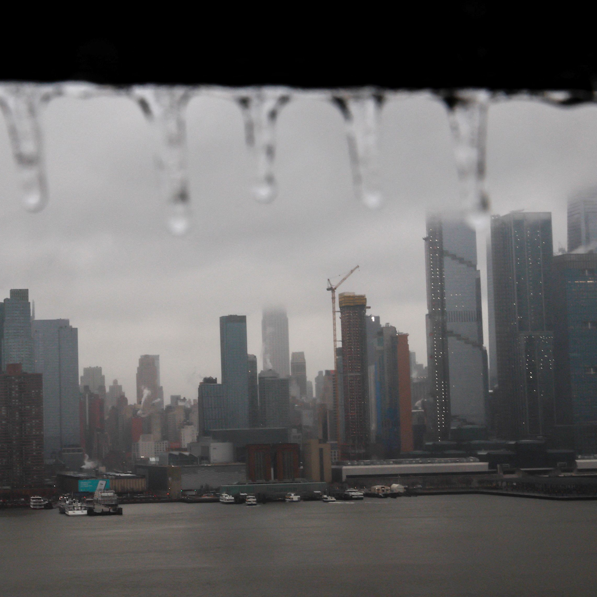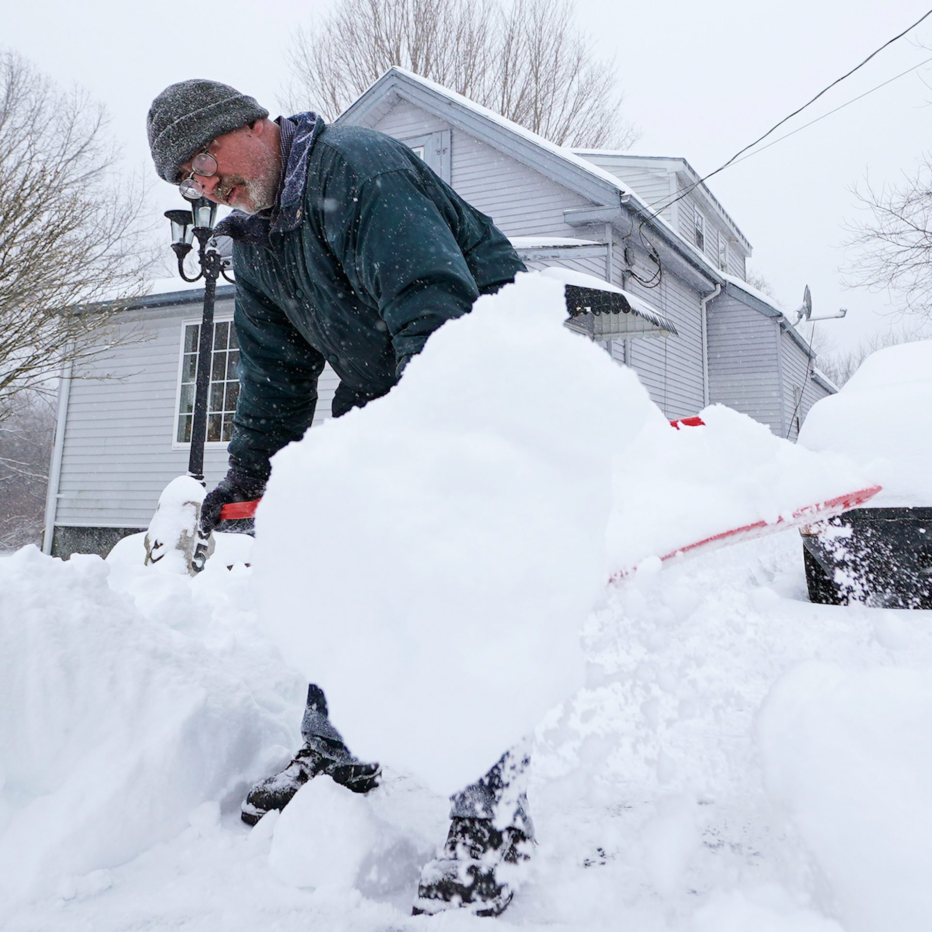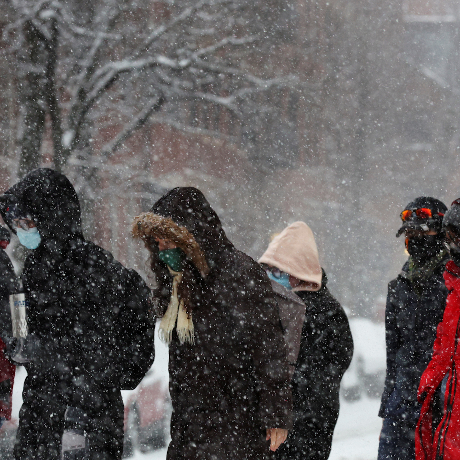A winter storm is dropping heavy snow and ice in the U.S. northeast, causing school closures and flight cancellations.