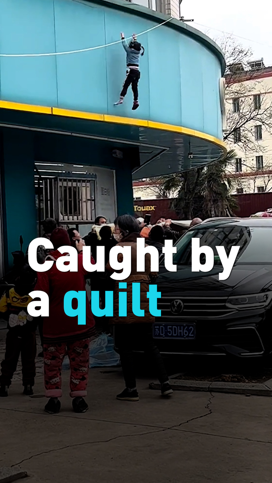 Residents of Changzhou, China saved a toddler with a quilt this week when she fell from the ledge of a building after climbing out a window. See the incredible moment.