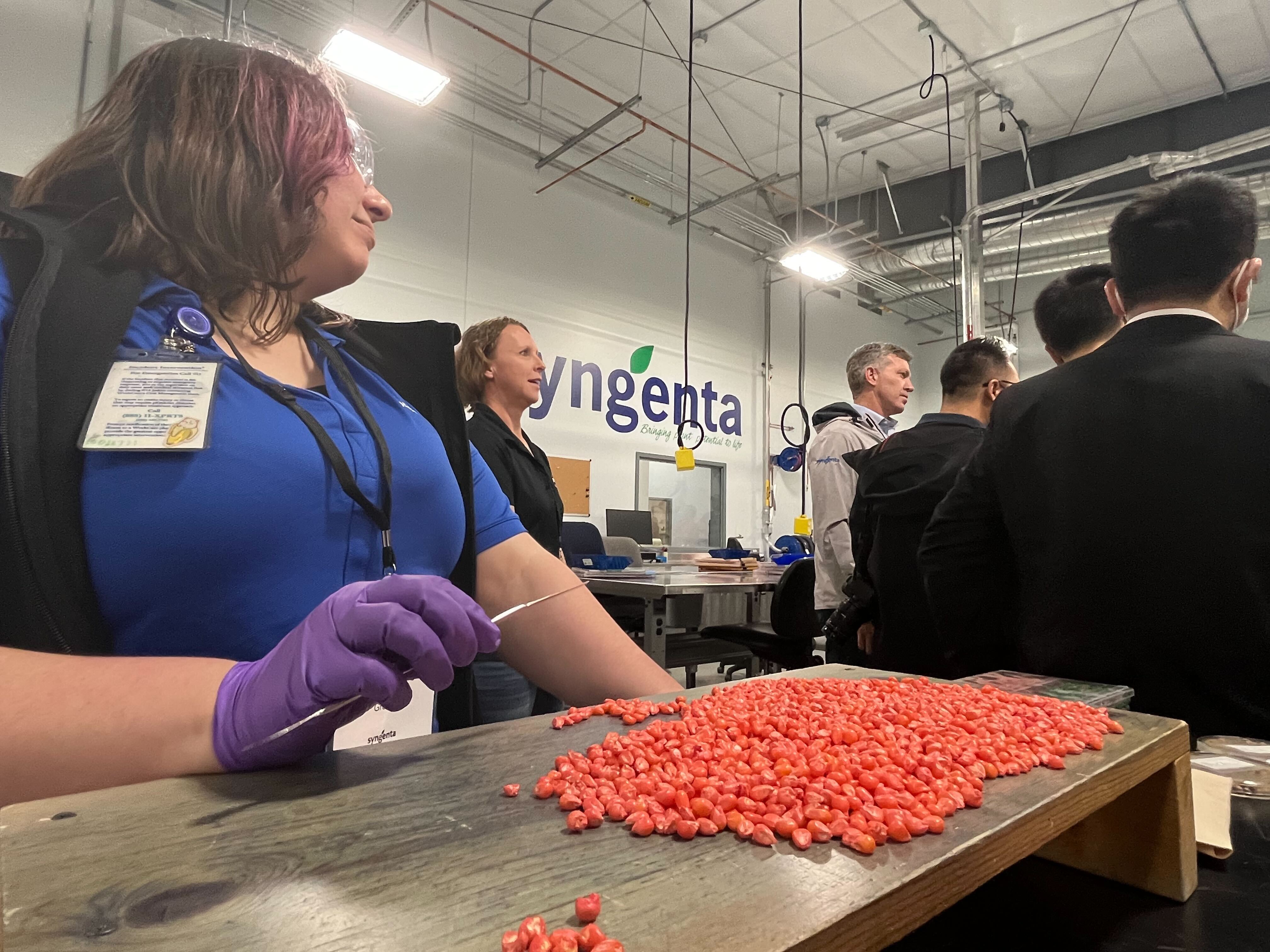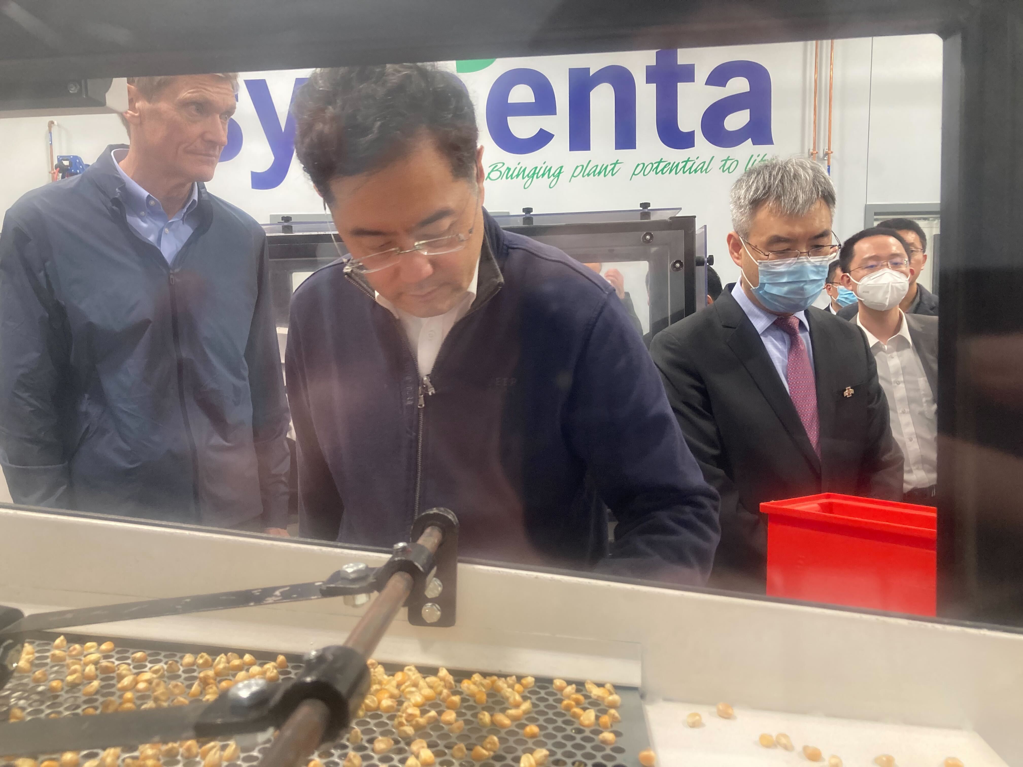 Qin and his delegation toured the testing facilities in Slater, Iowa, learning about the rigorous five-step testing process Syngenta seed samples go through before being sold on the global market. ChemChina’s $43 billion acquisition of Syngenta happened in 2017.