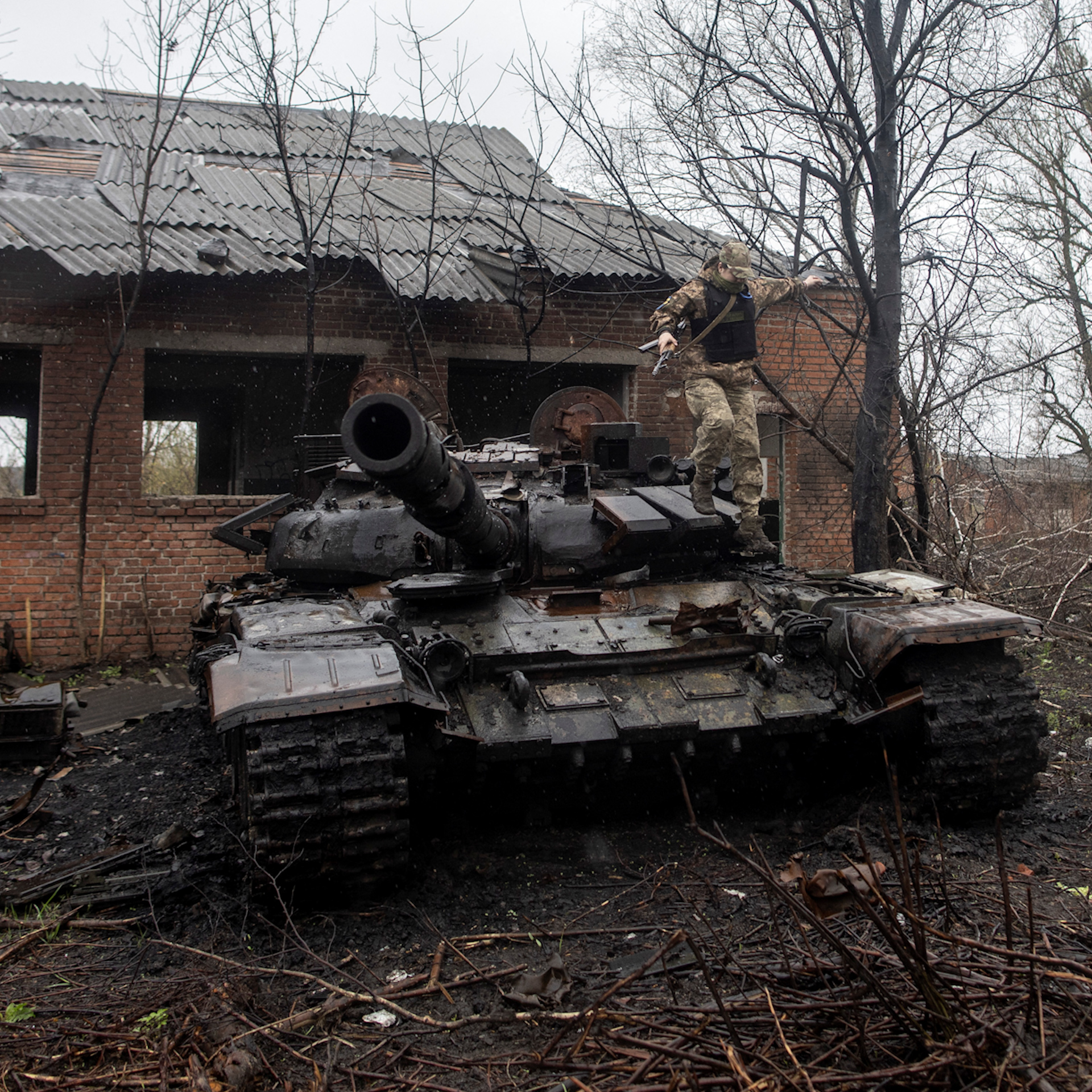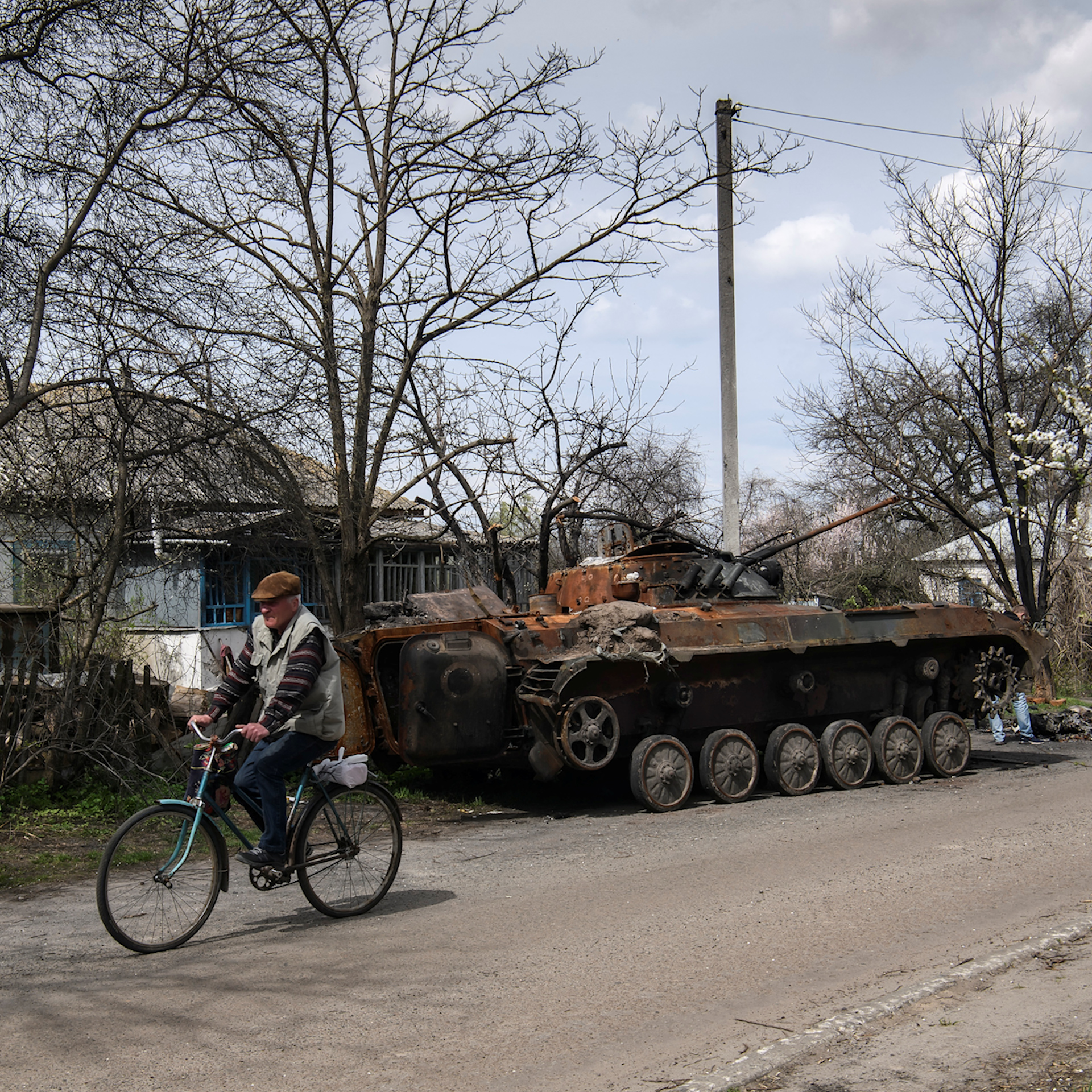 As Russia shifts the focus of their military operation to eastern Ukraine, abandoned and destroyed military vehicles remain in towns that have faced heavy fighting.