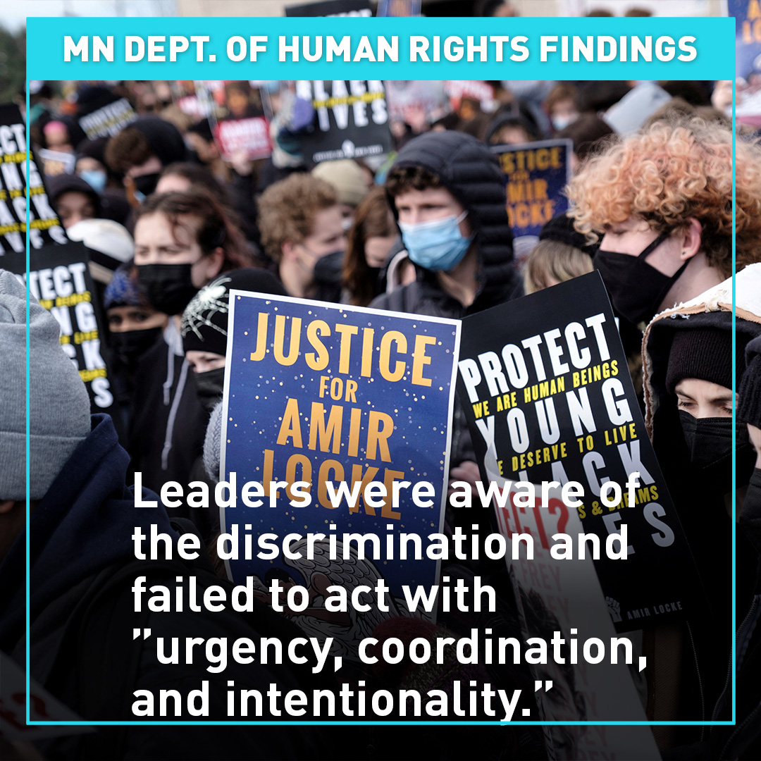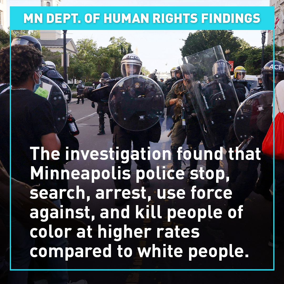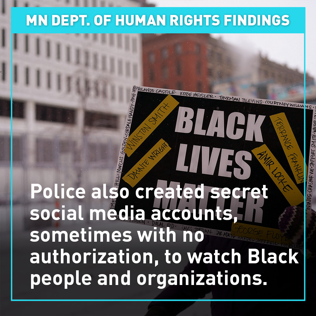 The Minneapolis Police Department routinely engages in racially-discriminatory policing, fails to hold officers accountable for misconduct, and has used fake social media accounts to target Black people and organizations, an investigation by Minnesota's Department of Human Rights has found.