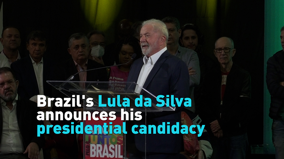 Former Brazilian President Luiz Inacio Lula da Silva officially announced his candidacy for another term as president in this year's election at an event in São Paulo.