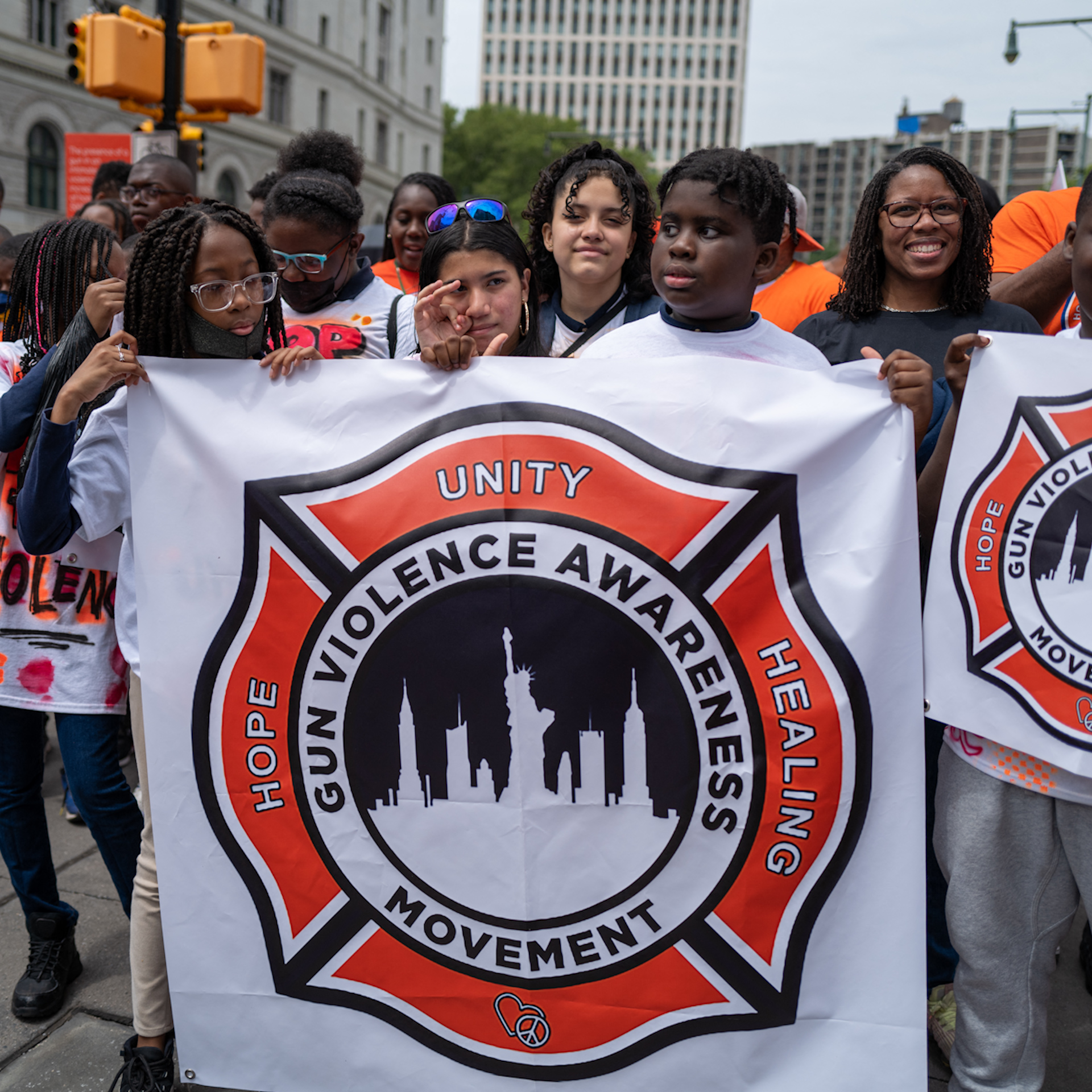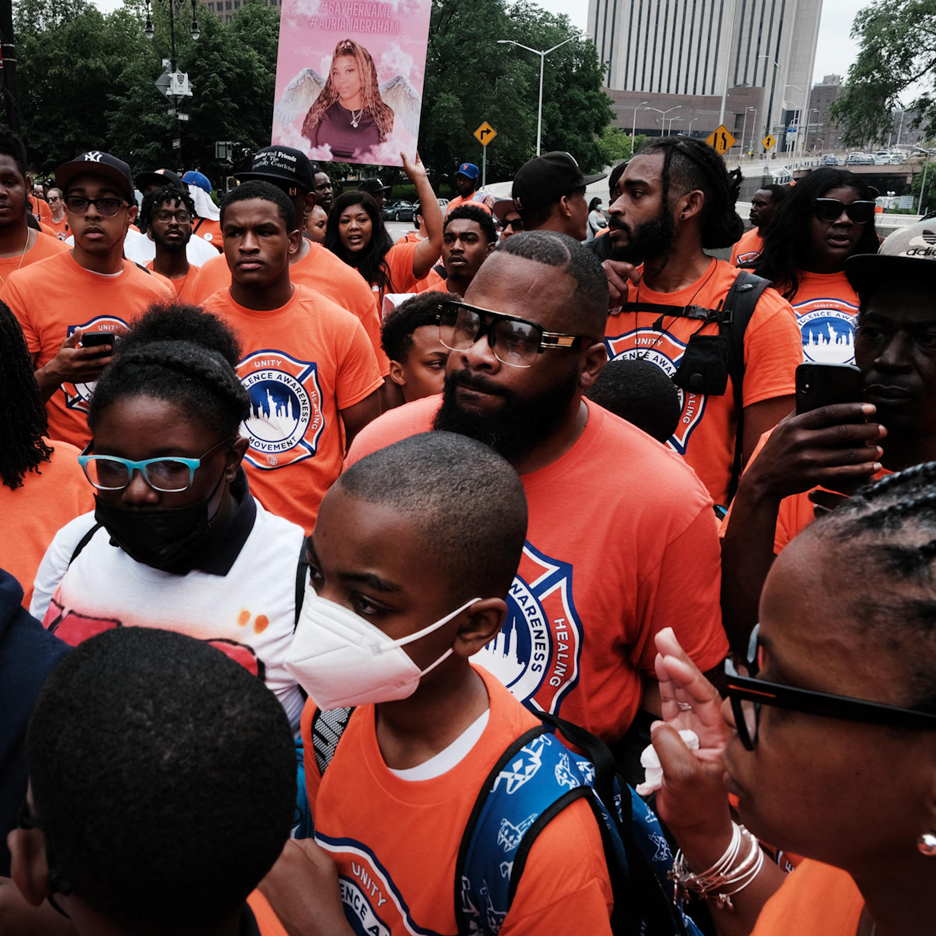 Wearing orange, dozens marched from Brooklyn to Manhattan on Friday, denouncing gun violence.