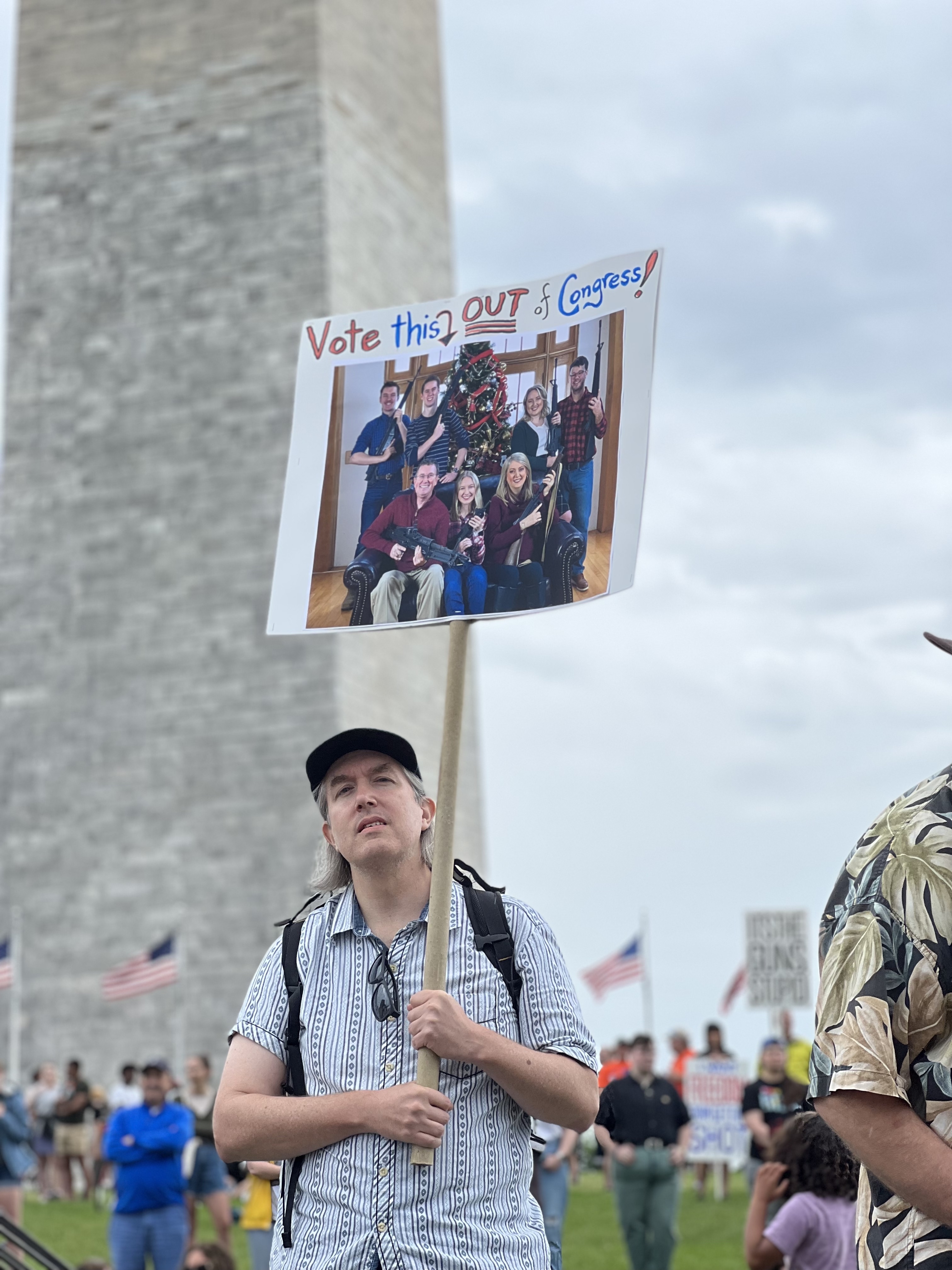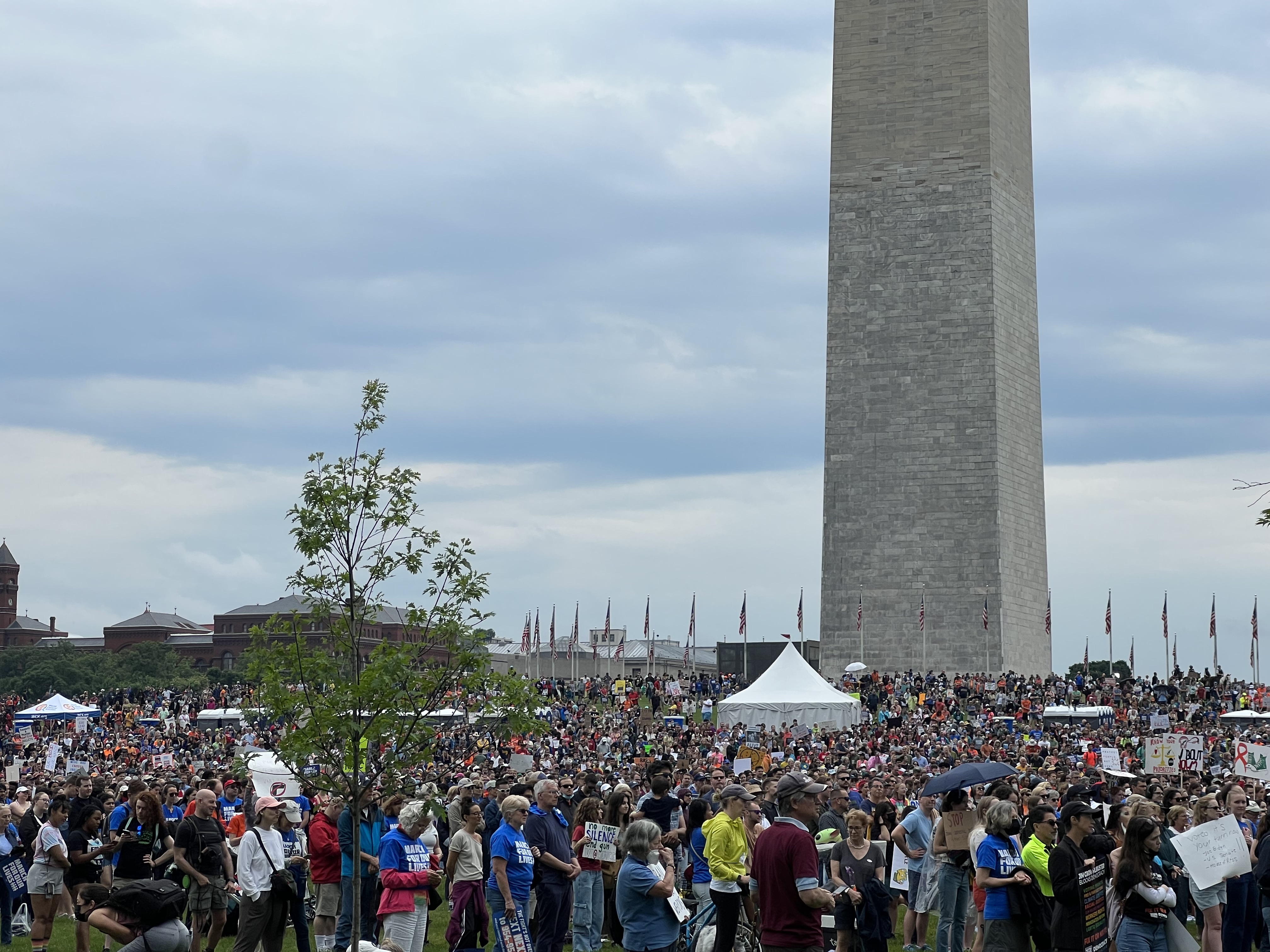 Thousands gathered at the Washington Monument in Washington D.C. on Saturday, demanding gun control reform from their elected officials.