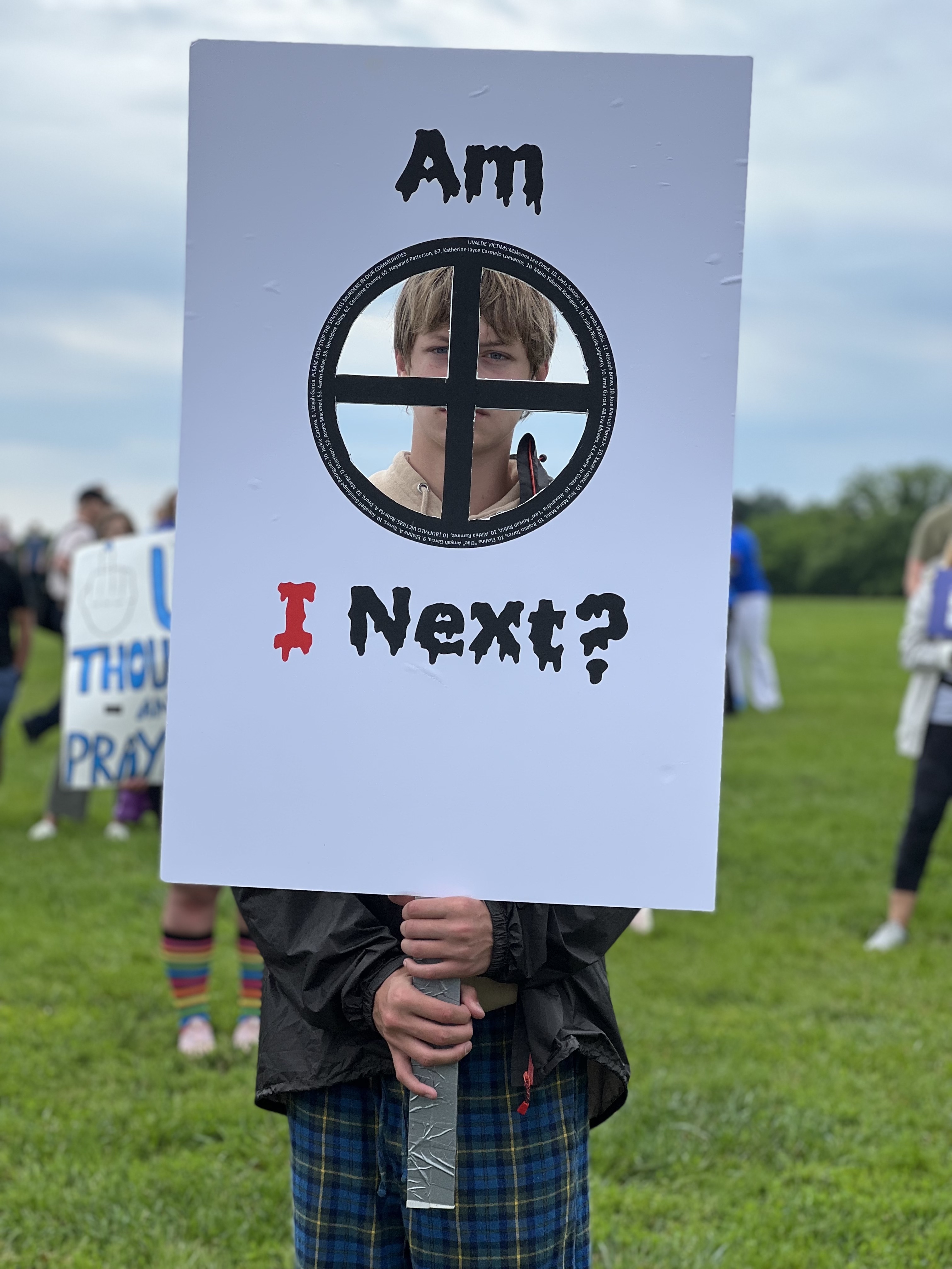 Gun control advocate David Hogg, a survivor of the 2018 Parkland, Florida mass shooting that killed 17 high schoolers, spoke to the crowds.