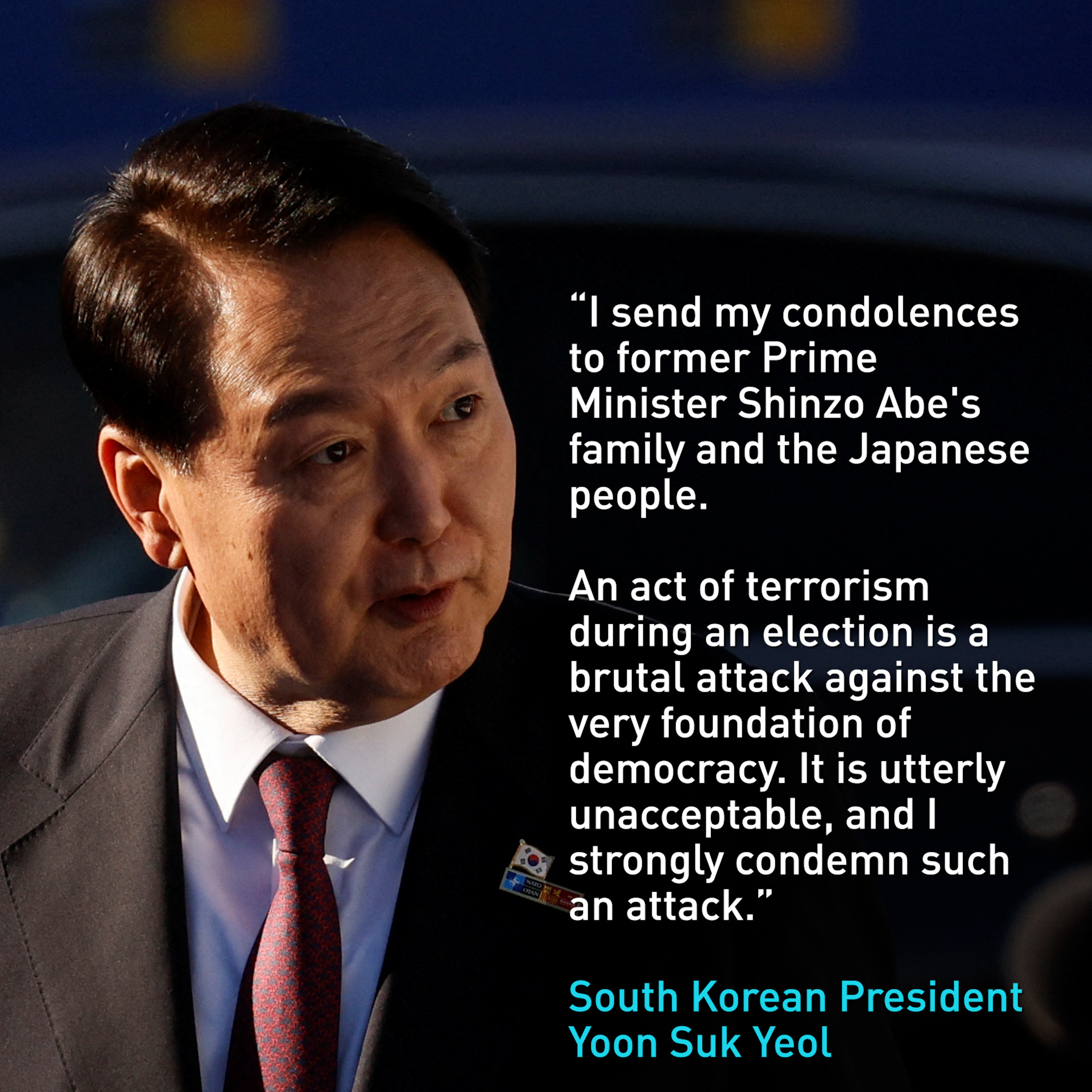 World leaders have sent their condolences and reactions to the slaying of former Japanese Prime Minister Shinzo Abe. Abe was shot and killed on Friday while campaigning for a parliamentary election.