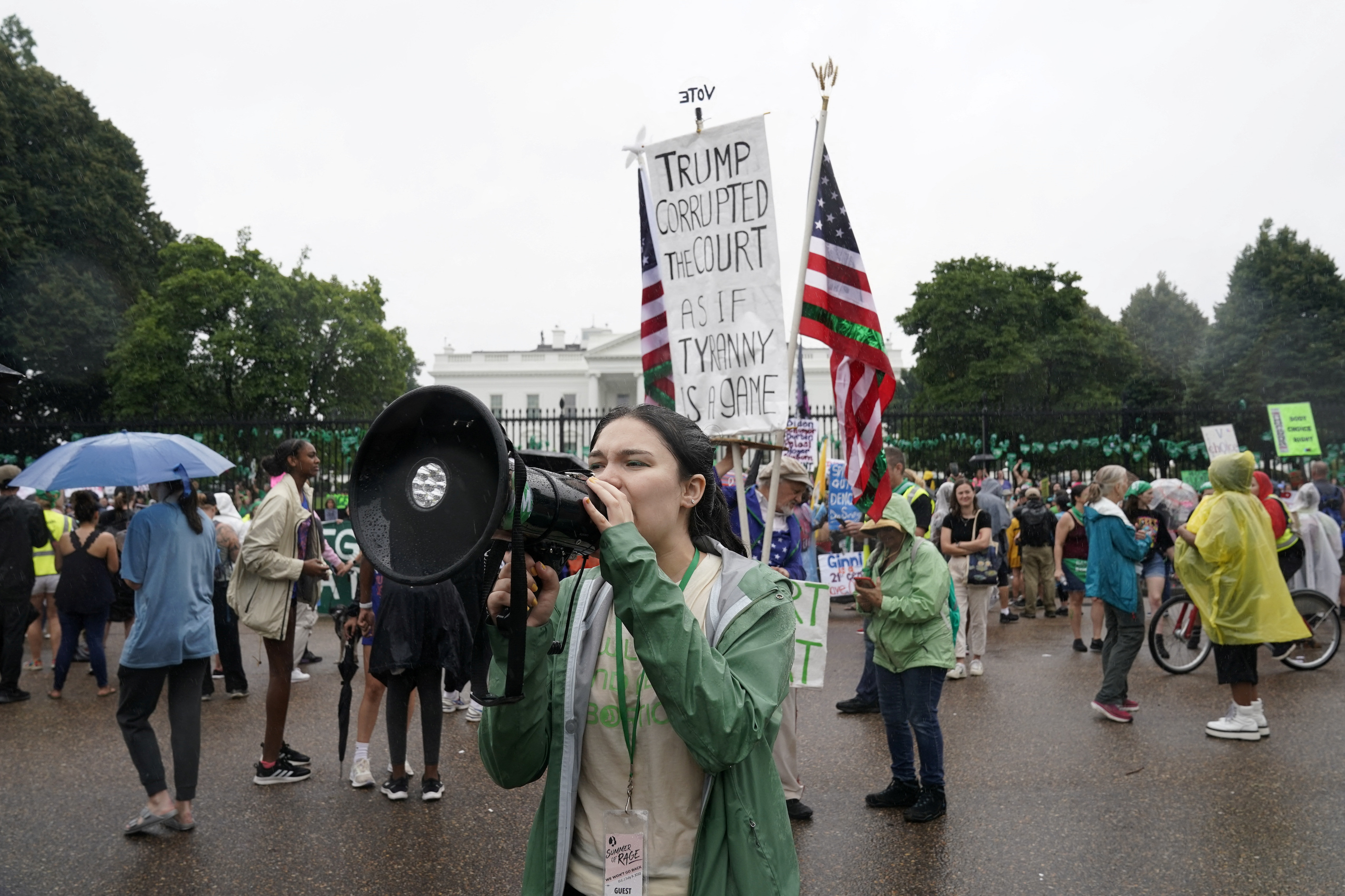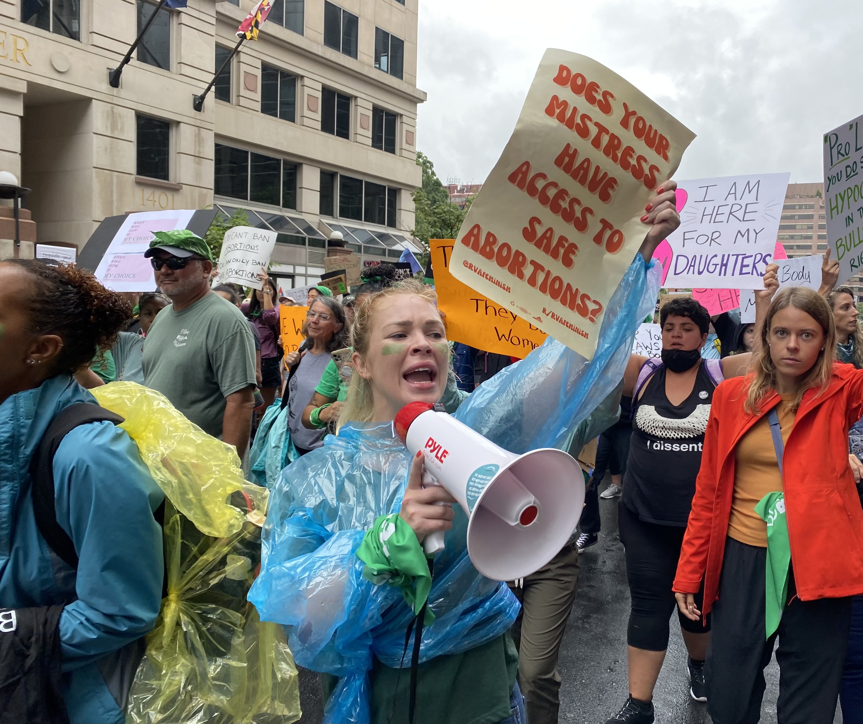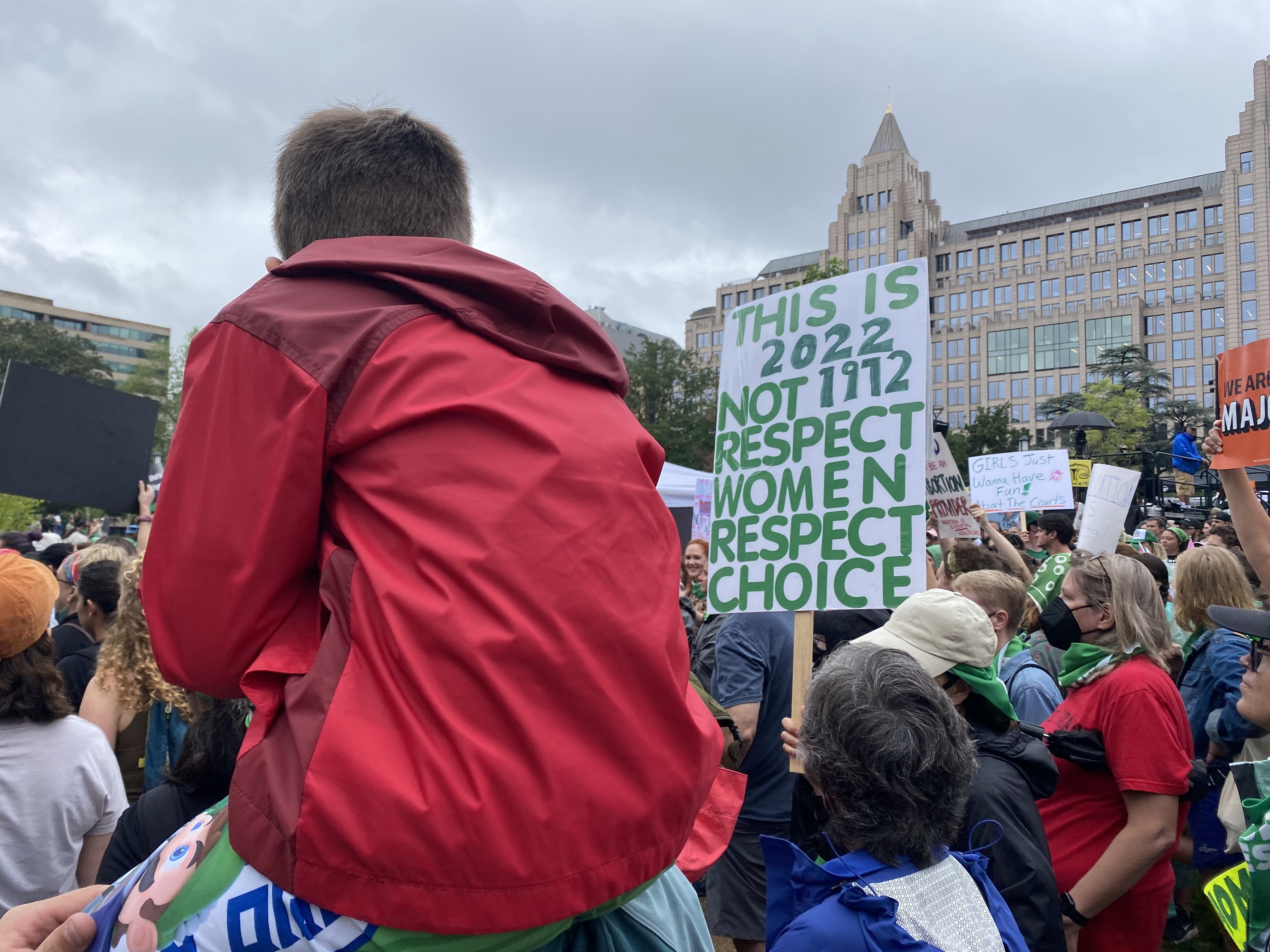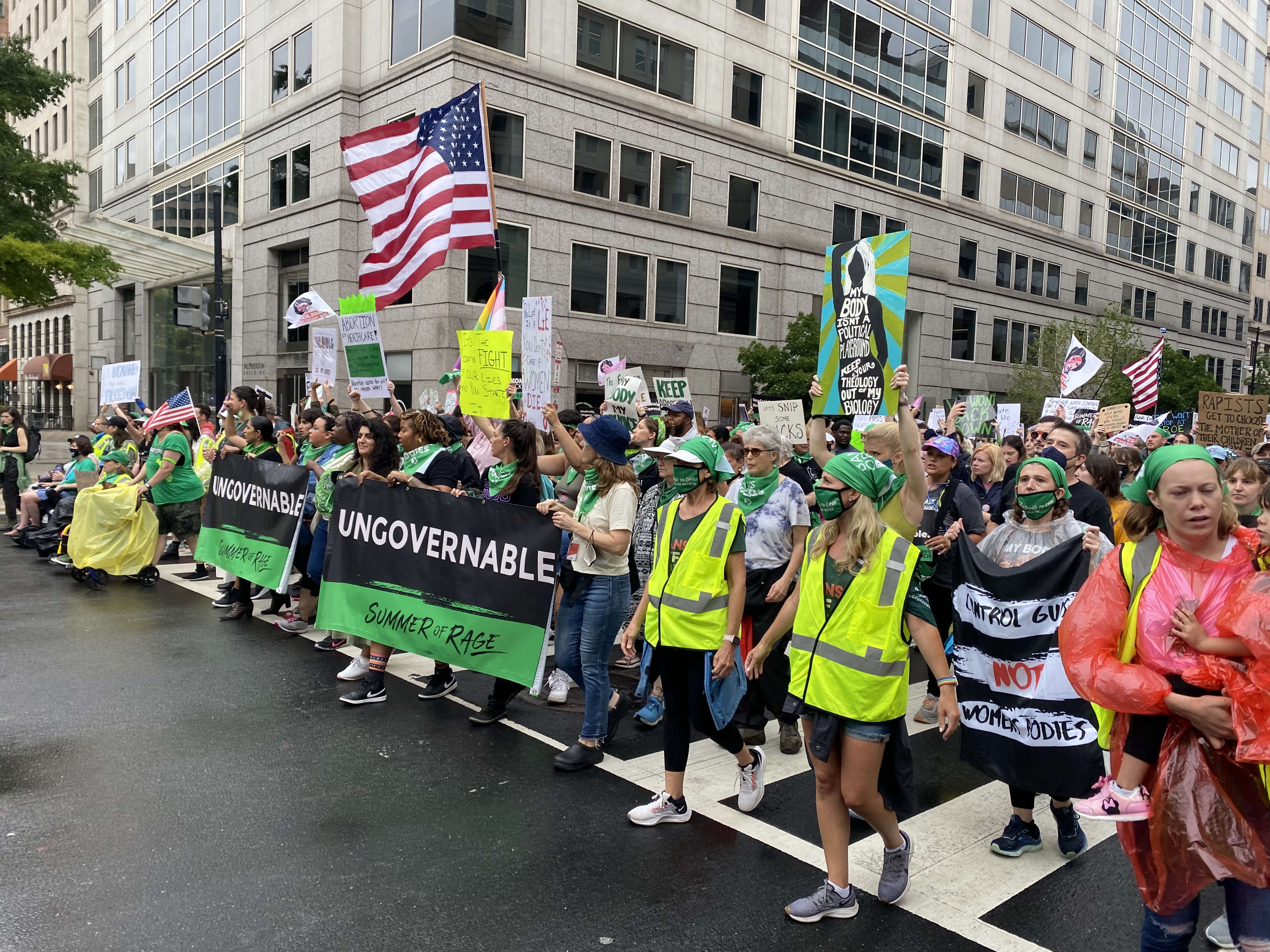 Saturday’s demonstration started in the morning just blocks from the White House, with activists showing up in the rain to demand the president use his power to support the right to choose a safe abortion.