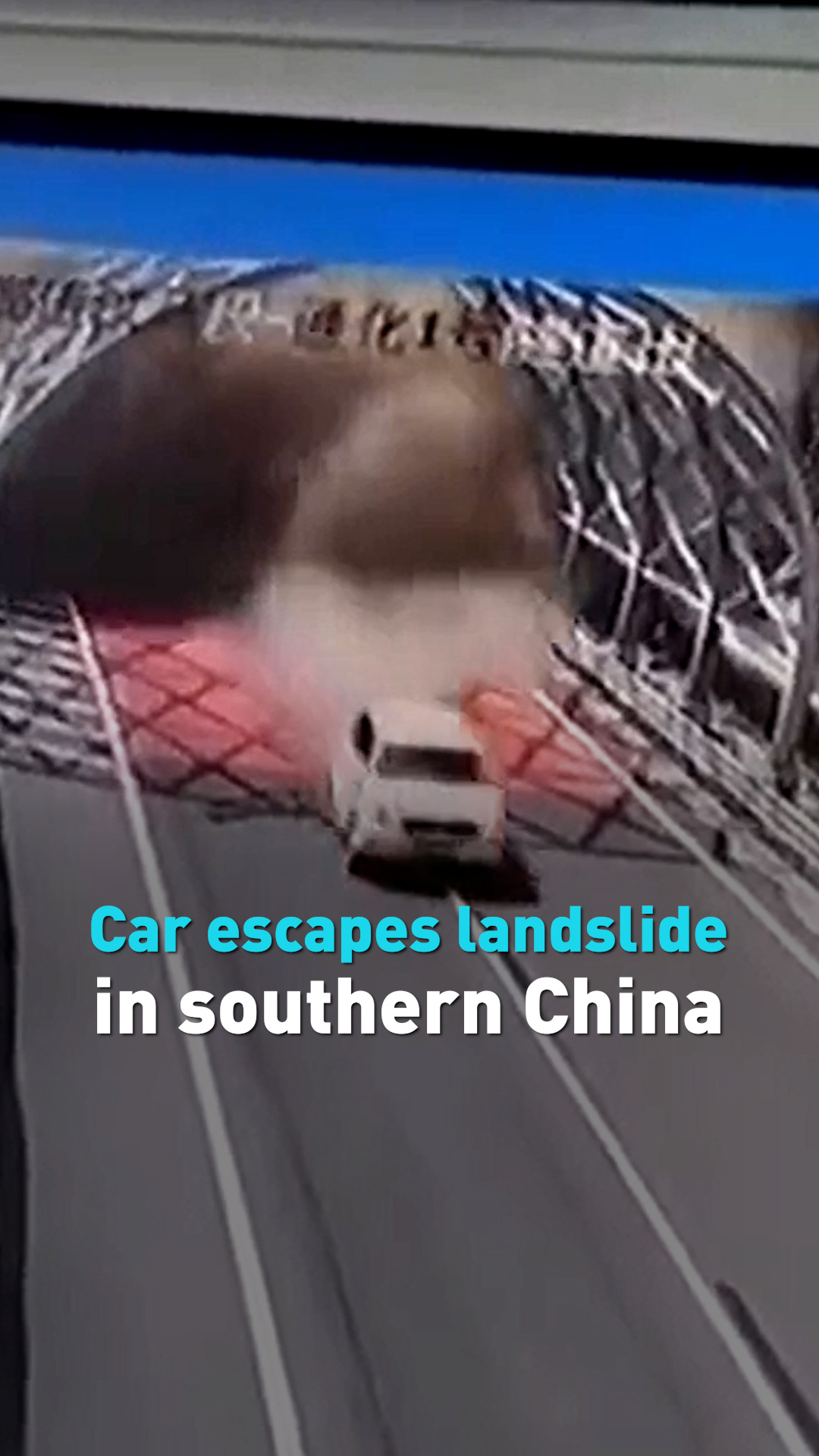 Watch this car narrowly escape being trapped in a tunnel after a landslide in Sichuan Province China.