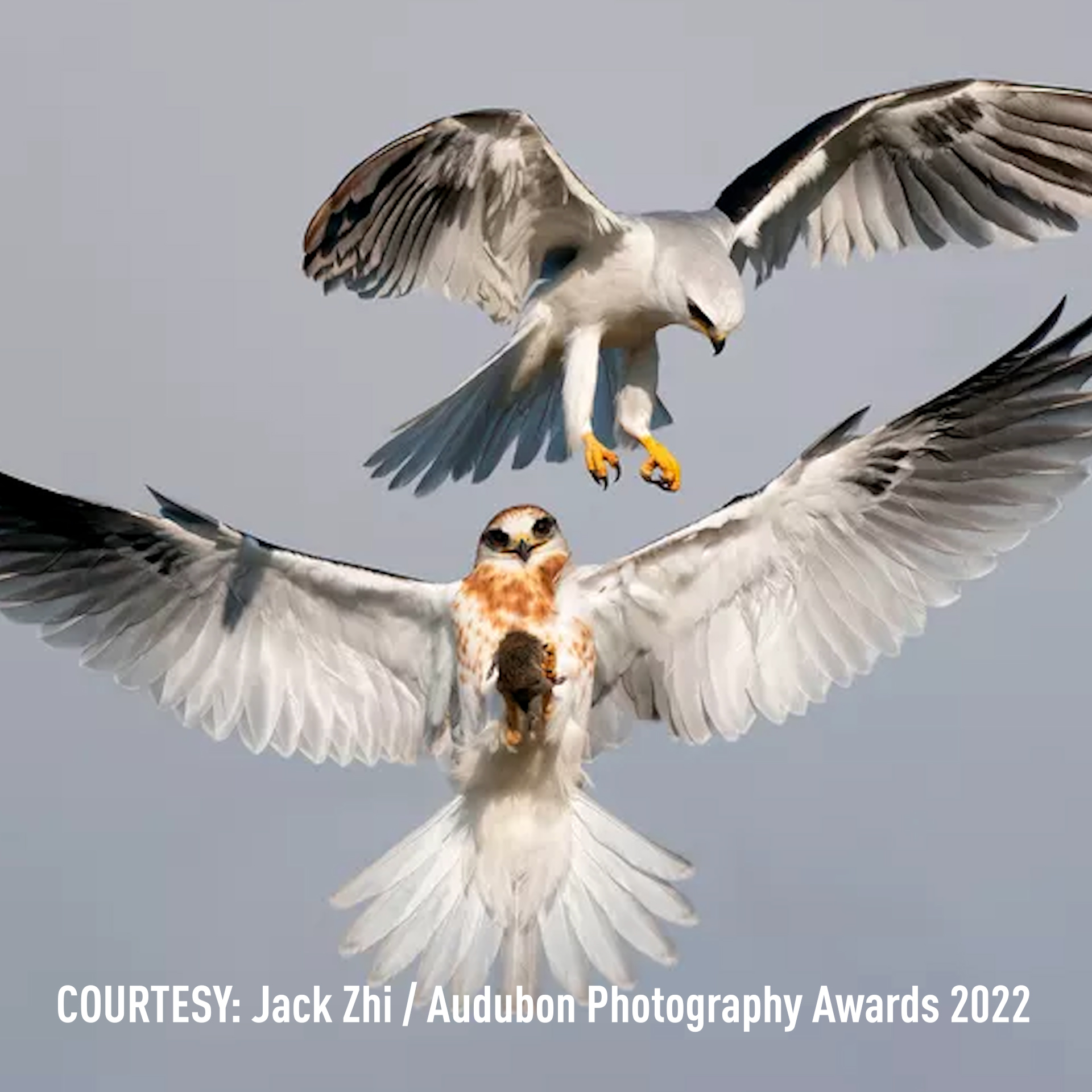 Jack Zhi from California, took home the grand prize with a picture of a white-tailed kite clutching a rodent in its talons.