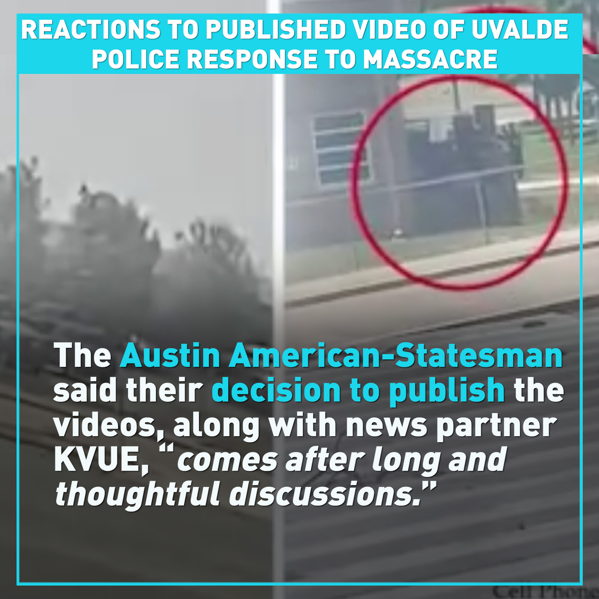 A wide range of reactions are emerging on Thursday following the controversial decision of the Austin American-Statesman to publish security video from inside Robb Elementary School during and after the attack by a gunman that killed 19 children and two teachers in Uvalde, Texas.