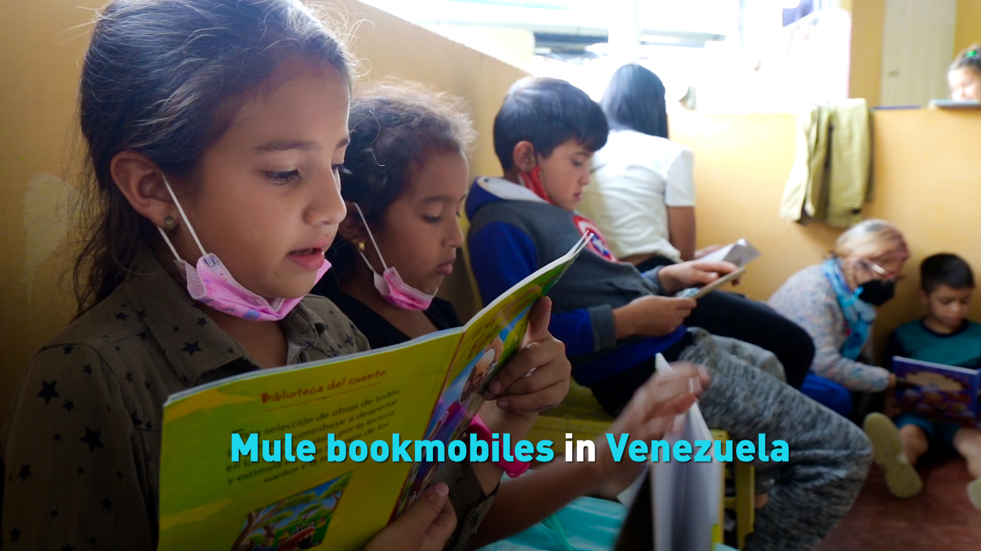 A mobile library carried by a mule named Canela is spreading the love for books and encouraging children to learn how to read and write.