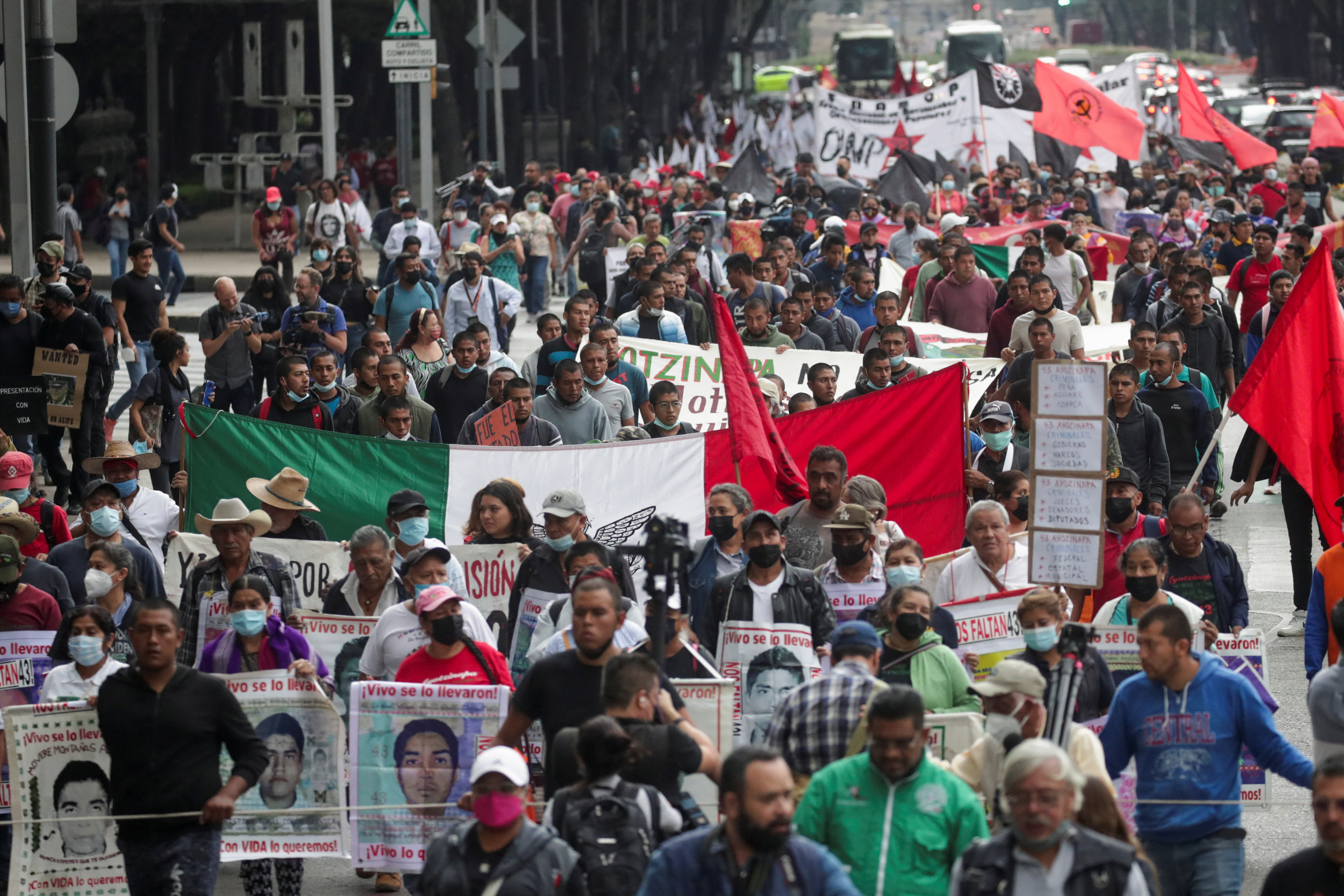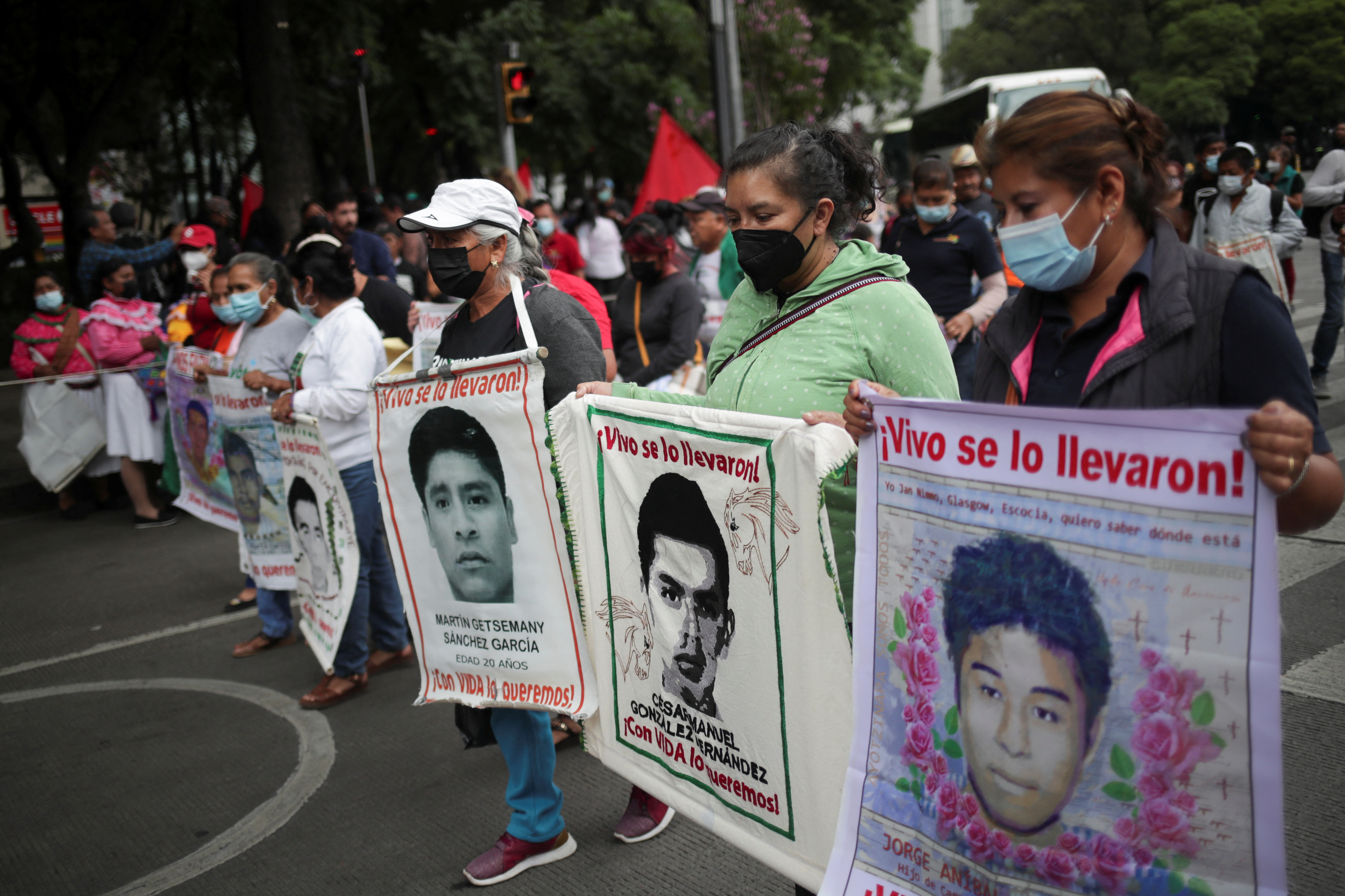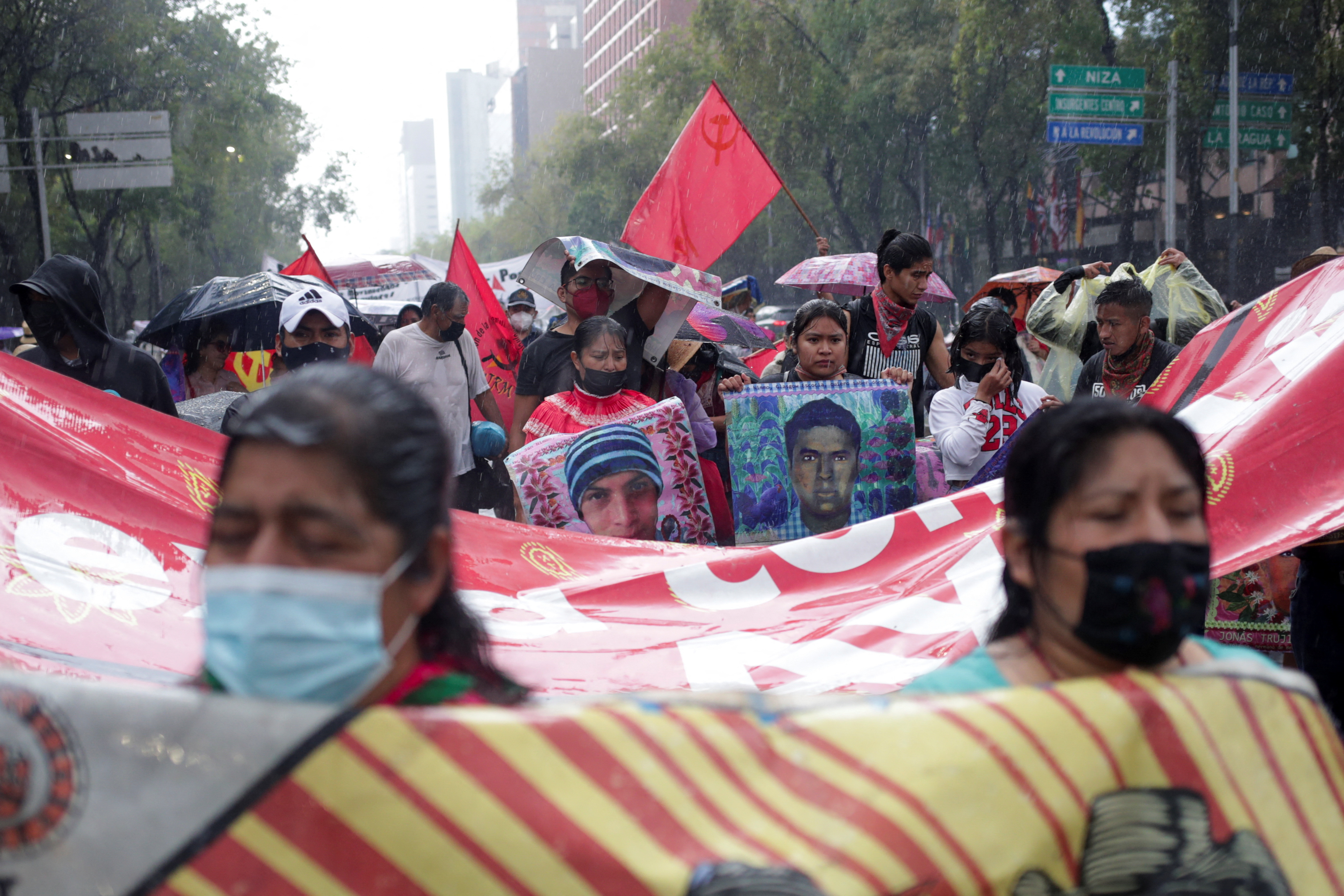 Hundreds marched in the rain on Friday to demand justice for the 43 student teachers who disappeared in 2014 while on a field trip.