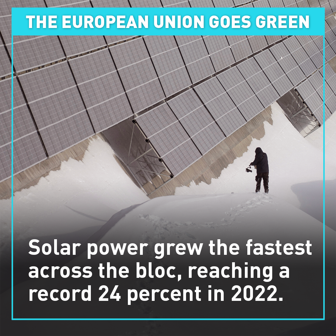 Solar power grew the fastest across the bloc, reaching a record 24 percent in 2022.