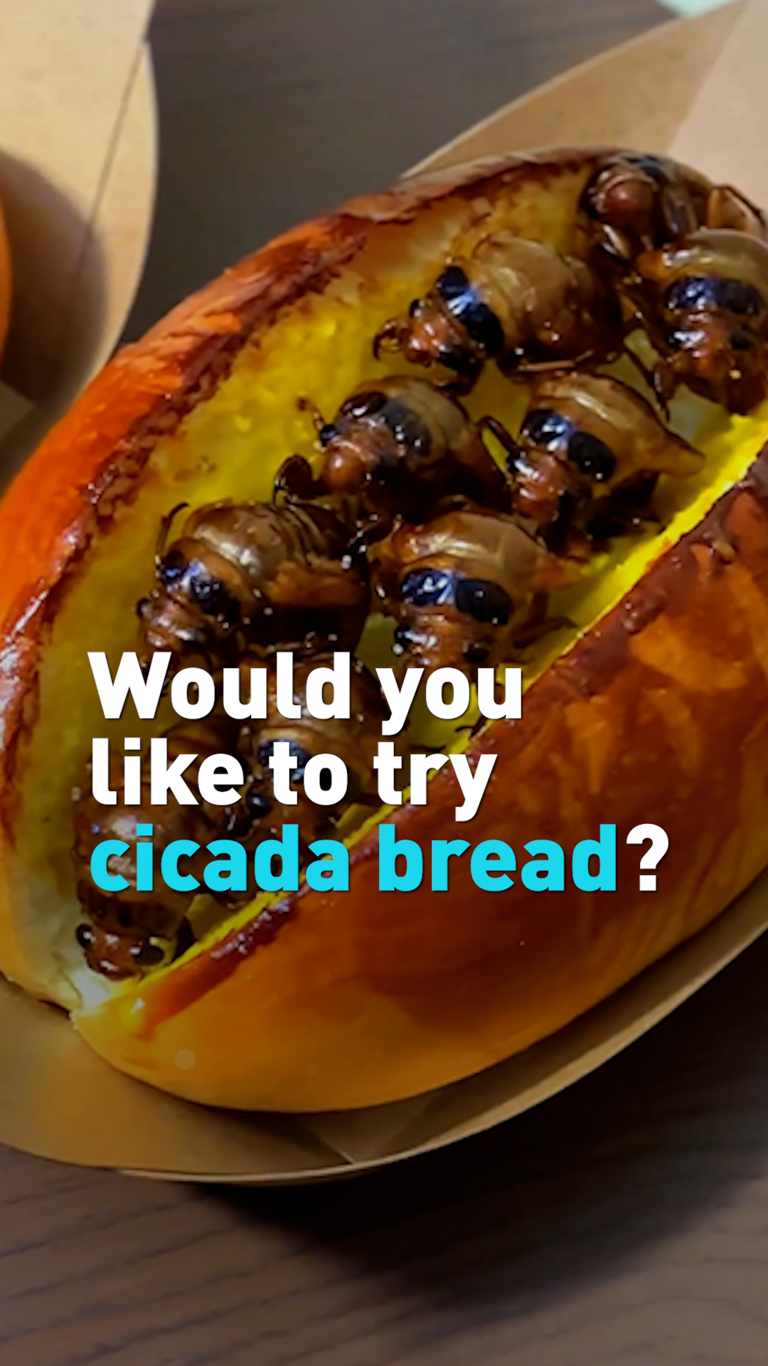 From crispy cicada bread... to cicada-filled cake. A Chinese cake shop owner brings a playful twist to his bakery offerings.