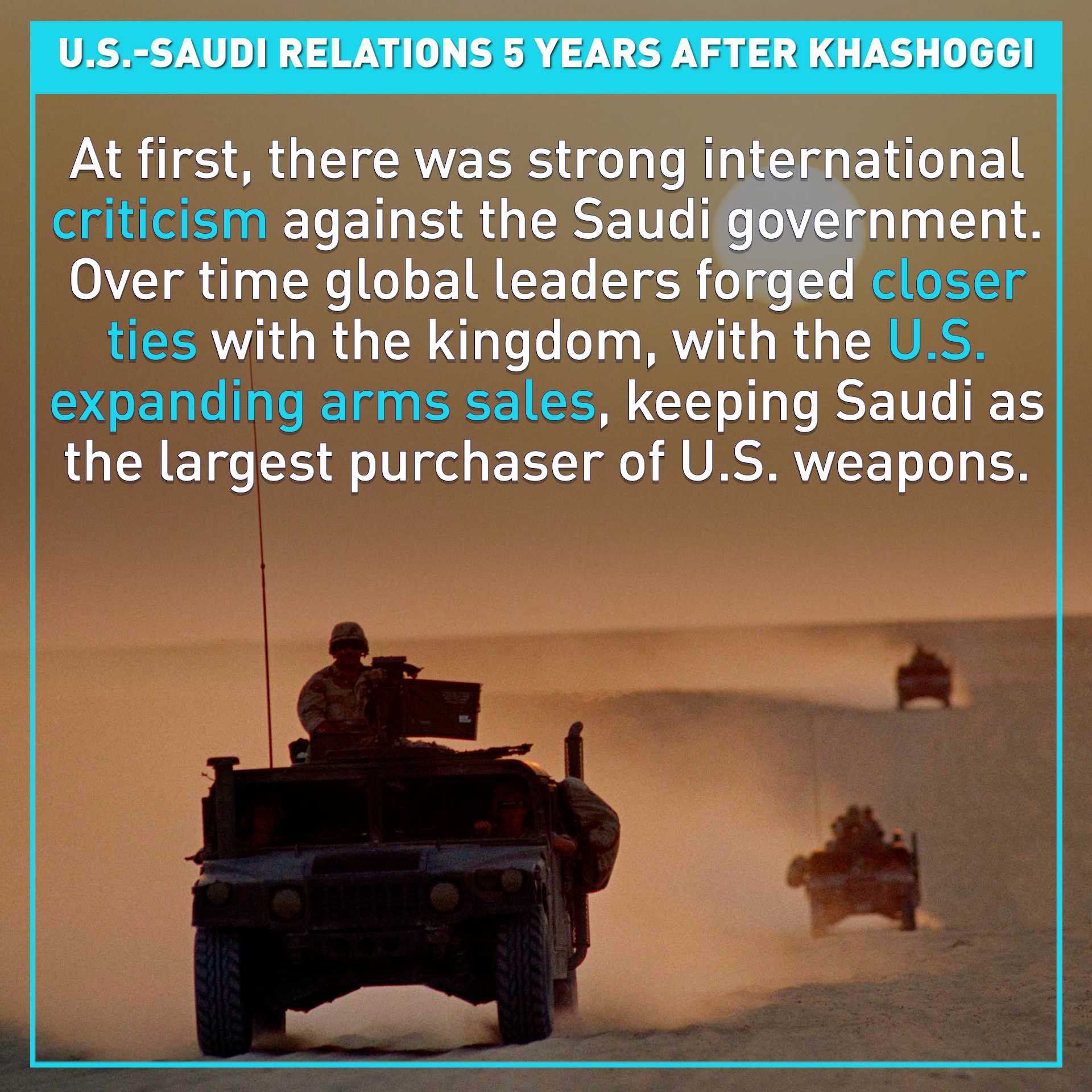 What's more, in the years since the murder, U.S.-Saudi relations have taken an unexpected turn. Despite initial strong criticisms, global powers, especially the U.S., have warmed up to Saudi Arabia. The Biden administration has significantly expanded arms sales, maintaining Saudi Arabia's position as the top global purchaser of U.S. weaponry.