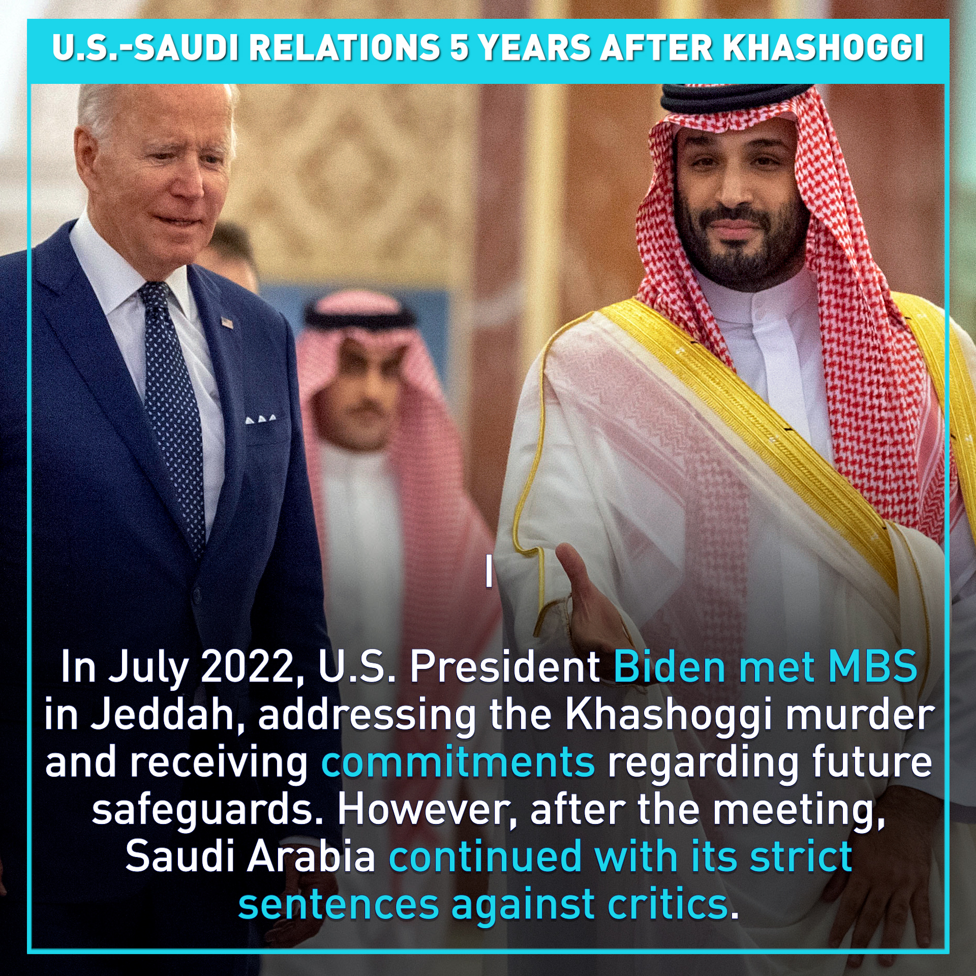 While U.S. President Biden did address the Khashoggi murder during his July 2022 visit to Jeddah, subsequent actions, including severe sentences handed to the kingdom's critics, highlight a gap between Saudi assurances and actions.